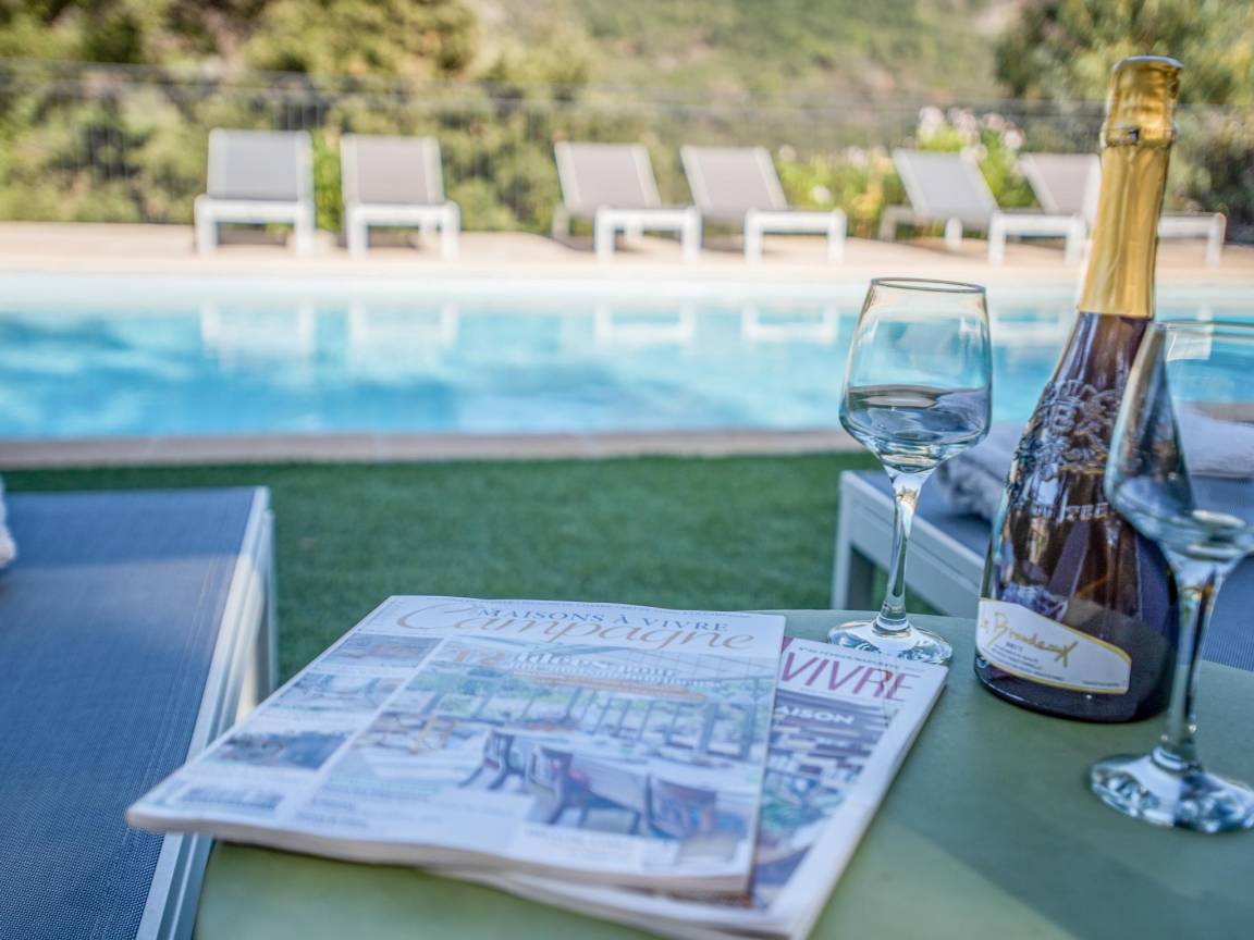 Terrasse, Terrasse(überdacht), Garten(alleinige Nutzung, umzäunt, 5000 m²), Gartenmöbel, Liegen, BBQ(Gas), 5x Parkplatz, Pool(alleinige Nutzung, im Garten, gegen Gebühr, beheizbar, umzäunt, 10 x 5 m., Tiefe: 1.5 - 2.2m, geöffnet von Apr bis einschließlich Okt), Tischtennisplatte, 1x Kinderbett (ohne Bettwäsche), 1x Hochstuhl, Bügelbrett, Bügeleisen, Gartenlounge, Wasser vom Brunnen, Lademöglichkeit für Elektroautos