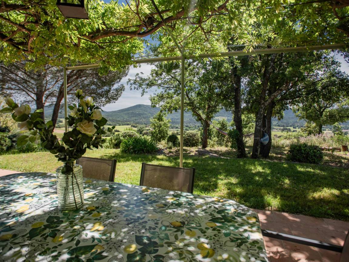Hausbeschreibung : Diese provenzalische Villa liegt versteckt inmitten von Weinbergen in einem privaten 1 Hektar großen Naturgebiet, in dem Sie schöne Spaziergänge unternehmen können. Von Ihrer Terrasse aus haben Sie einen herrlichen Blick auf die Weinberge. Genießen Sie ein erfrischendes Bad im Infinity-Pool und anschließend die Düfte und Farben der Natur auf einem der Liegestühle oder in der Hängematte mit einem Glas Rosé von einem der vielen Weingüter in Plan-de-la-Tour. Der Bouleplatz ist auch verfügbar