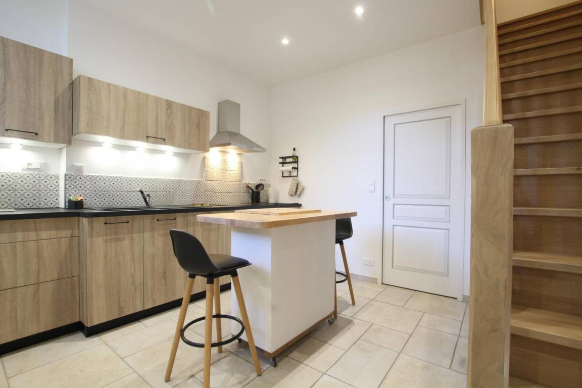 Freistehendes Haus. Im Erdgeschoss: Wohnzimmer mit Holzofen (1. Korb Holz wird angeboten, die folgenden auf Kosten des Kunden in geeigneten Geschäften). Fernseher. Einbauküche (Induktionskochfeld, Dunstabzugshaube, Mikrowelle, Elektroherd, Geschirrspüler, Kühlschrank mit Gefrierfach). Duschraum mit WC (2 Waschbecken, Dusche, Waschmaschine). Obergeschoss: Schlafzimmer 1 (3 Einzelbetten 90x200). Schlafzimmer 2 (2 Einzelbetten 90x200). Badezimmer mit Waschbecken und WC. Privates, eingezäuntes Grundstück. Durch eine Schranke gesicherter Innenhof. Gartenmöbel. Grill. Überdachter Unterstand. Parkplatz. Bettwäsche und Handtücher werden gestellt, Betten bei Ankunft bezogen. Optionaler Reinigungsservice. Elektroheizung gegen Aufpreis. 4G-Netz (kein spezifischer Internetzugang im Ferienhaus).