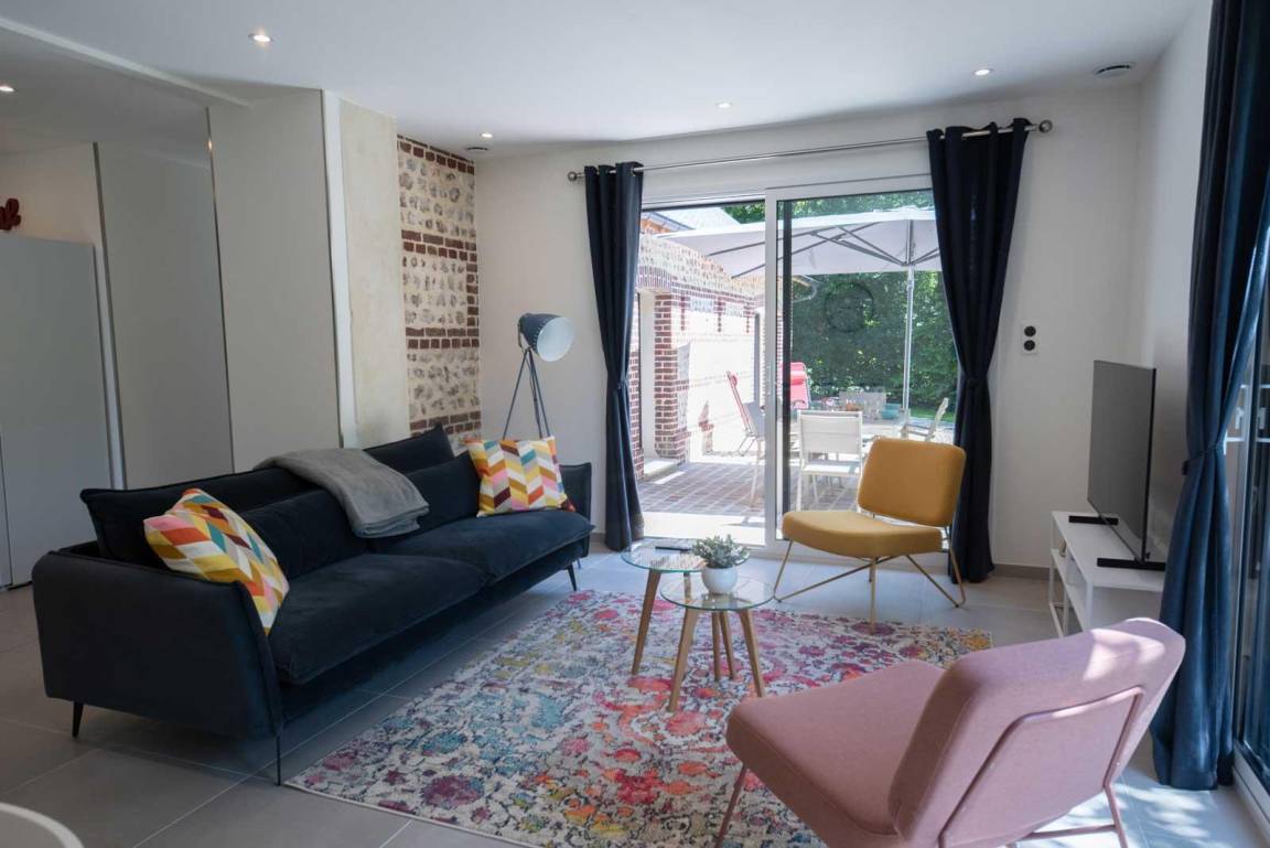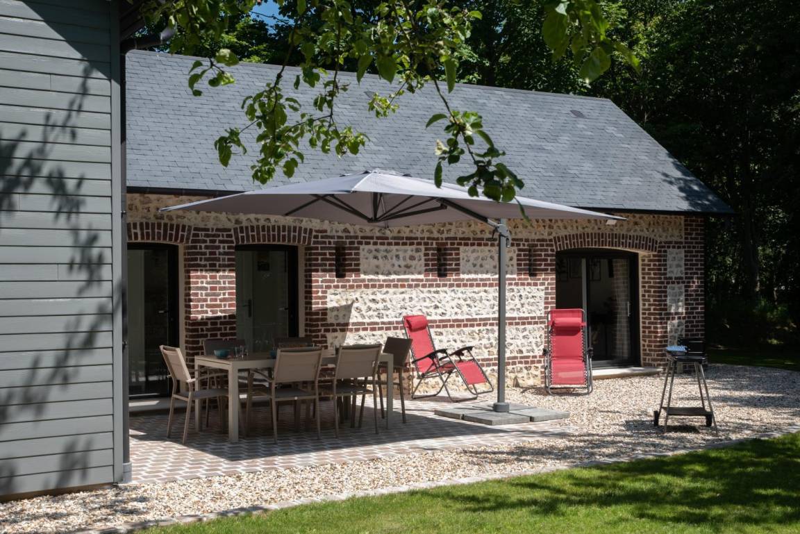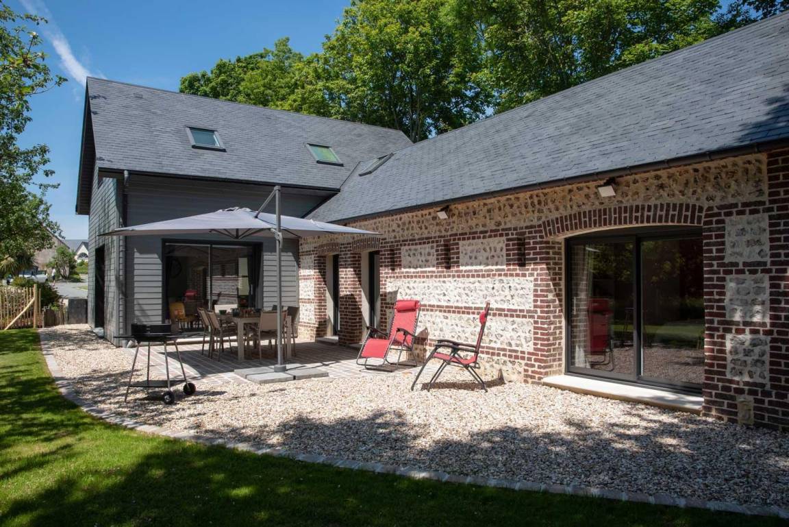 „Die Lage ist großartig! Man ist sehr schnell beim Bäcker, kann zu Fuß zum Strand und zu den Klippen wandern, und braucht nur eine halbe Stunde nach Le Havre bzw. weniger als eine Stunde nach Rouen. Der Naturschatten unter den Bäumen und der Sonnenschirm auf der Terrasse ergaben noch einmal zusätzliche Räume zum Lesen oder Spielen. Das Haus liegt etwas abseits von der Straße und ist durch Hecken vom Wind geschützt. Die Haustechnik ist perfekt: Die Lüftungsanlage ist wie die Spülmaschine sehr leise und sorgt für angenehme frische Luft - die Jalousien lassen sich einzeln oder zentral steuern. Die Küche ist modern, praktisch und trotzdem sehr wohnlich eingerichtet. Es gibt ausreichend Geschirr und immer noch genügend Platz für eigene Vorräte. Das Haus war die Basis für einen grandiosen Sommerurlaub.“