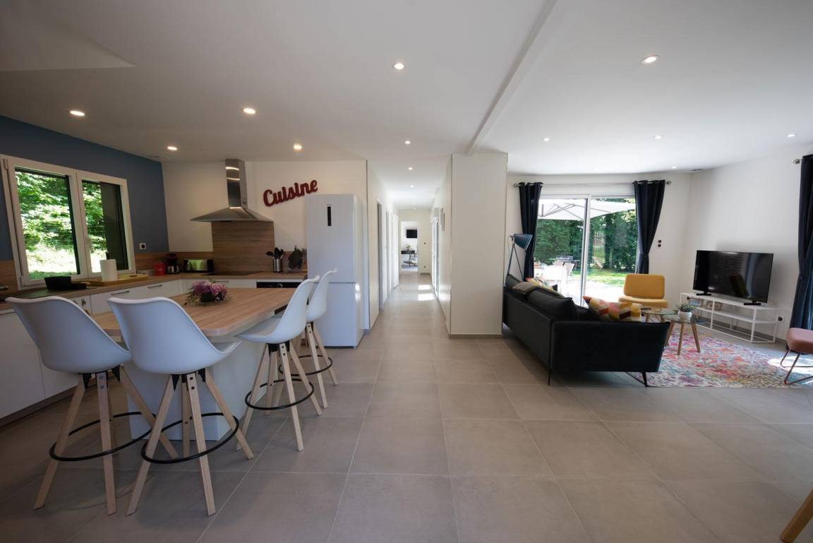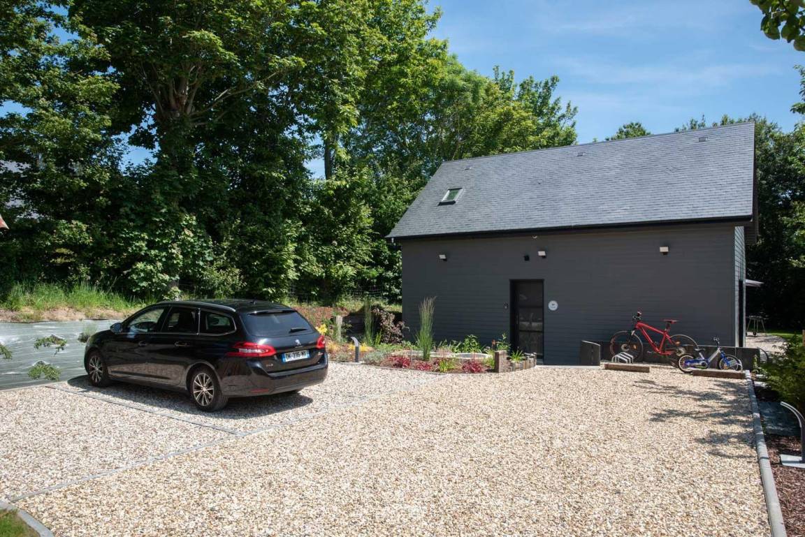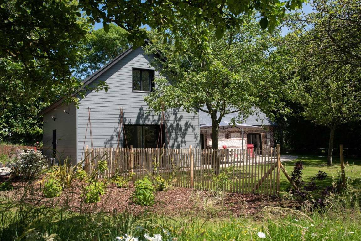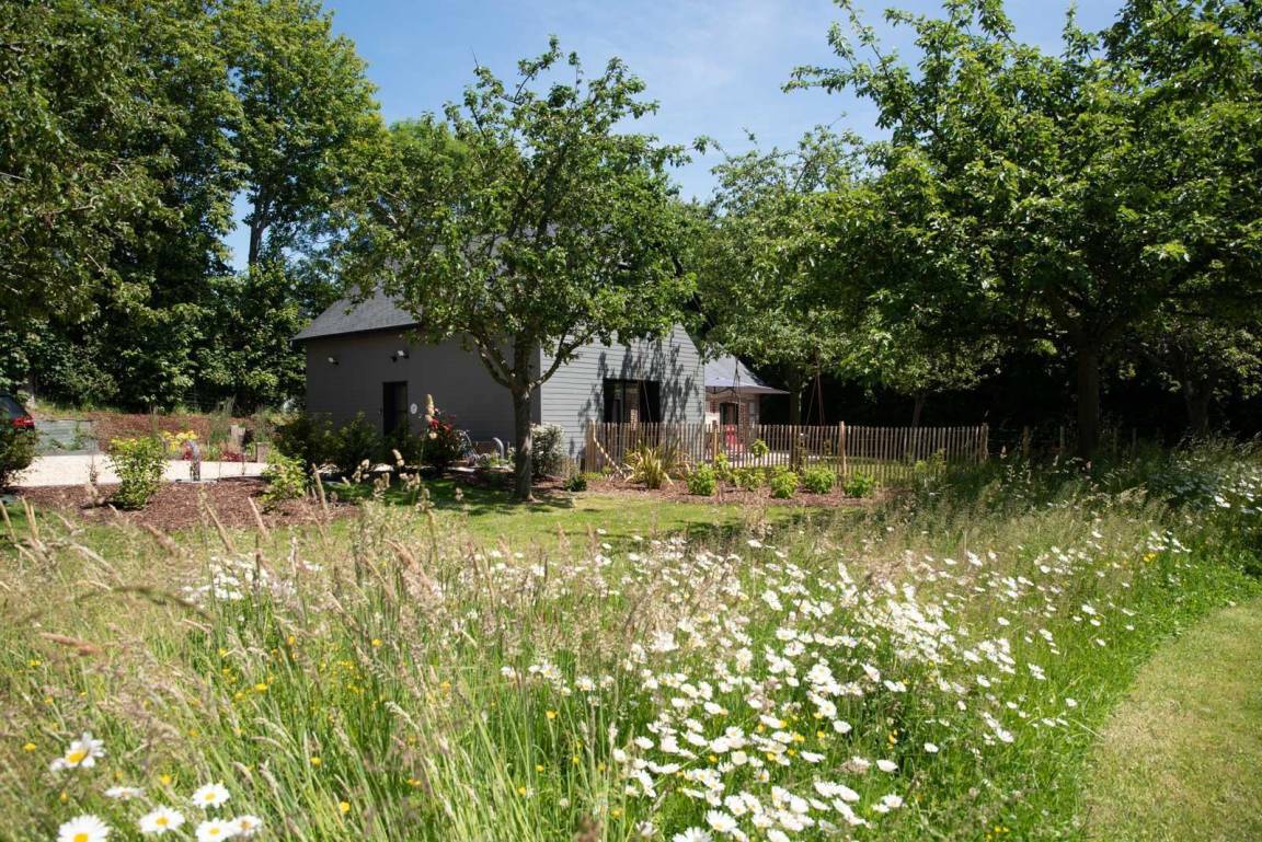 „Die Lage ist großartig! Man ist sehr schnell beim Bäcker, kann zu Fuß zum Strand und zu den Klippen wandern, und braucht nur eine halbe Stunde nach Le Havre bzw. weniger als eine Stunde nach Rouen. Der Naturschatten unter den Bäumen und der Sonnenschirm auf der Terrasse ergaben noch einmal zusätzliche Räume zum Lesen oder Spielen. Das Haus liegt etwas abseits von der Straße und ist durch Hecken vom Wind geschützt. Die Haustechnik ist perfekt: Die Lüftungsanlage ist wie die Spülmaschine sehr leise und sorgt für angenehme frische Luft - die Jalousien lassen sich einzeln oder zentral steuern. Die Küche ist modern, praktisch und trotzdem sehr wohnlich eingerichtet. Es gibt ausreichend Geschirr und immer noch genügend Platz für eigene Vorräte. Das Haus war die Basis für einen grandiosen Sommerurlaub.“