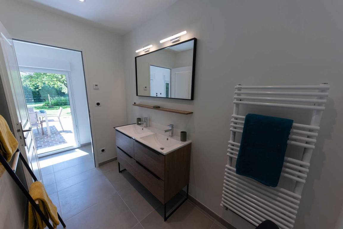 „Alles wat je nodig hebt is hier aanwezig en alles is ook inclusief voor 6 personen. Een grote koelkast is aanwezig evenals een afwasmachine. De eigenaar is heel aardig, behulpzaam en erg klantvriendelijk. Met google translate konden we over en weer goed communiceren, want hij spreekt enkel Frans.De eigenaar woont op hetzelfde terrein, maar je komt elkaar absoluut niet tegen, tenzij je dat wilt.Het huis is volledig ingericht met alles wat je nodig hebt. Wasmachine, droger en zelfs een strijkplank zijn aanwezig en zo goed als nieuw. De bedden zijn van prima (Ikea) kwaliteit. Ook de badkamers zijn schoon, ruim en met een erg goede douche. De bank en stoelen zijn fijn en een grote eettafel maakt het geheel prettig in gebruik. Naar ons idee bij 6 personen wel wat weinig relaxte zitplaatsen. Er is vloerverwarming voor koude tijden...Er is goede verlichting, ook indien je wilt lezen, alhoewel een echte leeslamp ontbreekt. De tuin en het grote terras zijn voorzien van een goede grote tafel met goed tuinmeubilair. Er is voldoende privé parkeergelegenheid en je kunt zelfs gebruik maken van een laadpaal voor elektrisch laden. Het is ook nog centraal gelegen in Normandië Maritiem dus een absolute aanrader. ---------------Tout ce dont vous avez besoin est ici et tout est également inclus pour 6 personnes. Un grand réfrigérateur est fourni ainsi qu'un lave-vaisselle. Le propriétaire est très gentil, serviable et très convivial. Google Translate nous a permis de bien communiquer encore et encore, car il ne parle que le français.Le propriétaire vit sur la même propriété, mais vous ne vous rencontrerez pas du tout, sauf si vous le souhaitez.La maison est entièrement meublée avec tout ce dont vous avez besoin. Machine à laver, sèche-linge et même une planche à repasser sont présents et aussi bien que neufs. Les lits sont d'excellente qualité (Ikea).Les salles de bains sont également propres, spacieuses et dotées d'une très bonne douche. Le canapé et“