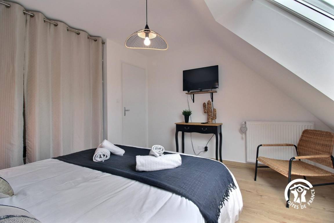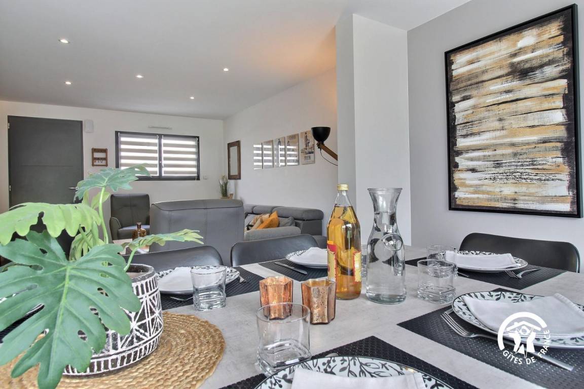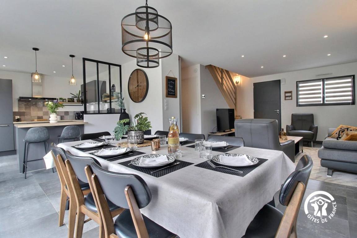 „Nous étions 3 couples d'amis pour le weekend du 11 novembre 2025. Les indications de la propriétaire sont très claires pour l'organisation! Nos hôtes nous on accueilli de la meilleur manière qui soit. Le gite est vraiment très propre et très bien équipé (tous le linge de maison est fourni!). C"est une maison neuve dans un quartier calme lors de notre séjour. Ce gite possède un jacuzzi très agréable. La literie est bonne et la décoration très soignée ce qui donne un sentiment de bien être. En étant a 6, nous ne nous sommes pas marché dessus. Il y a deux wc séparés et deux salles de bain dont une en bas. Le wifi est très bon et la télé a toutes les chaines. Il y a aussi de très nombreux jeux de sociétés. Un chemin très agréable se trouve a 25 mètres de la maison et vous emmène hors de la route vers la plage. Il y a quatre vélos adulte à disposition. Le genre de prestation qui contribue largement à ce que votre séjour soit idéal! Merci. Cet établissement mériterait largement une quatrième étoile.“