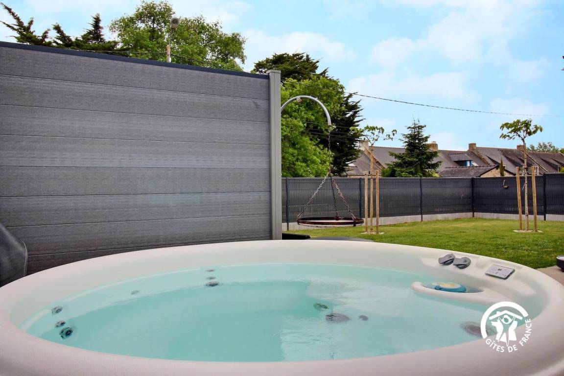 Draußen genießen Sie einen perfekt angelegten, umzäunten Garten: Terrasse, Pergola, Gartenmöbel, Liegestühle, Grill... alles ist da, um die schönen Tage zu genießen. Und für einen Moment der Entspannung zu jeder Jahreszeit steht Ihnen das ganze Jahr über ein privates Spa zur Verfügung.