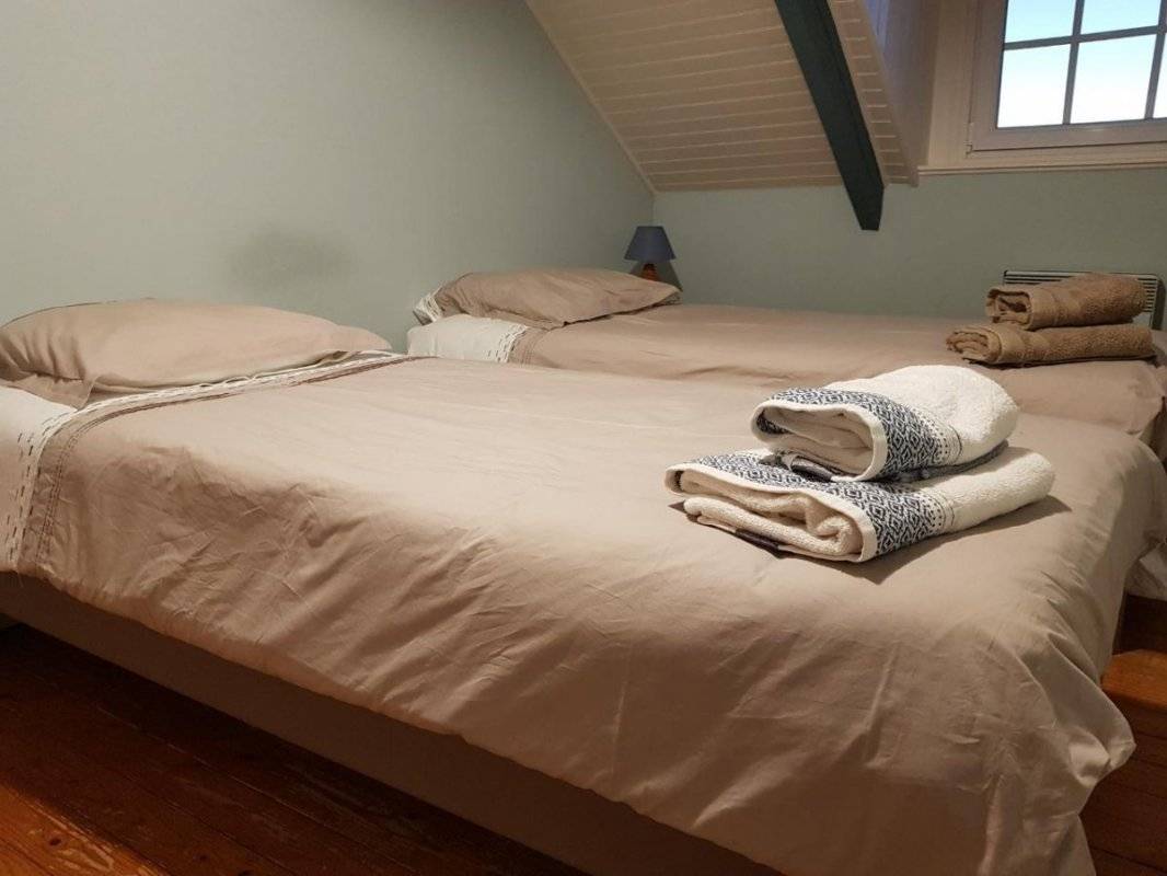 „The host is very friendly and checks in nearly every day. The gîte is pleasant with comfortable furniture in the livingroom and kitchen. You have a beautiful wide view in front and back of the house. The surroundings are very nice, with enough interesting places to go to and some very lovely beaches nearby. It is a pity that the double bed isn't very comfortable, because there's a pit/hole in the hard mattress. The single beds also have hard mattresses, but are more comfortable. There is some noisiness from the nextdoor neighbours. Overall we had a lovely stay.“