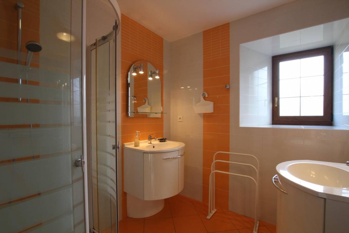 Einfamilienhaus. Im Erdgeschoss: Wohnzimmer (TV, Glasfaser-Internet, Radio/CD-Player). Wohnzimmer mit Holzofen (1. Korb gratis, weitere auf Kosten des Kunden). Zum Wohnzimmer offene Küchenecke (Cerankochfeld, Mikrowelle, Backofen, Espressomaschine, Geschirrspüler, Gefrierfach). Schlafzimmer 1 (1 Bett 140x190). Duschraum (2 Waschbecken und Dusche). WC. Obergeschoss: Schlafzimmer 2 (1 Bett 140x190). Schlafzimmer 3 (1 Bett 140x190 und 2 Einzelbetten). Duschraum (2 Waschbecken und Dusche). WC. Waschmaschine in der Waschküche. Parkplatz für Fahrzeuge. Privater umzäunter Garten mit Bäumen. Terrasse. Gartenmöbel. Liegestühle. Grill. Überdachter Unterstand. Elektroheizung gegen Aufpreis. Bettwäsche und Handtücher können gemietet werden. Betten bei Ankunft nicht gemacht. Reinigung optional. Babyausstattung.