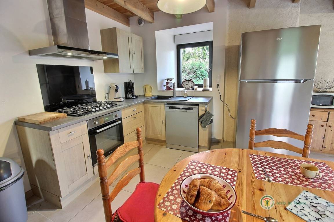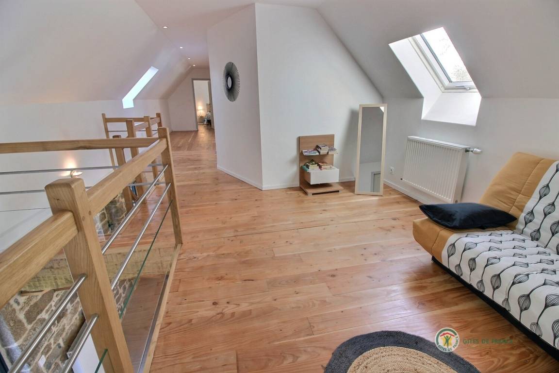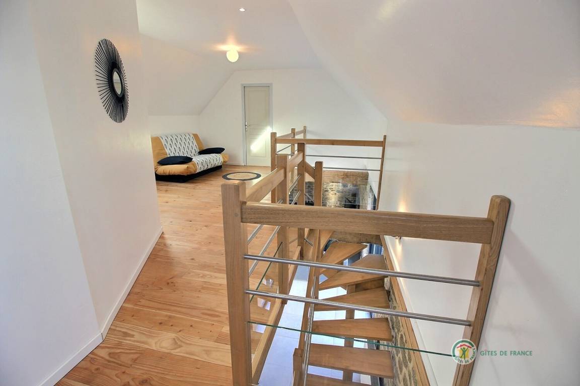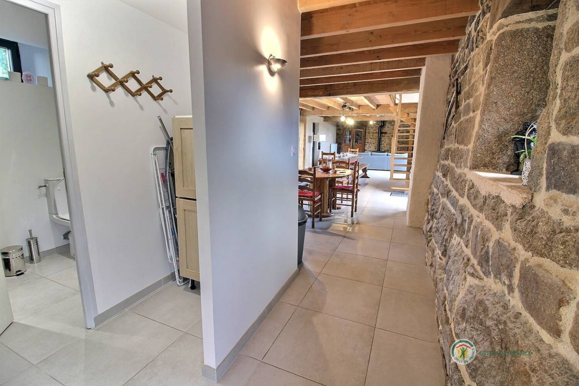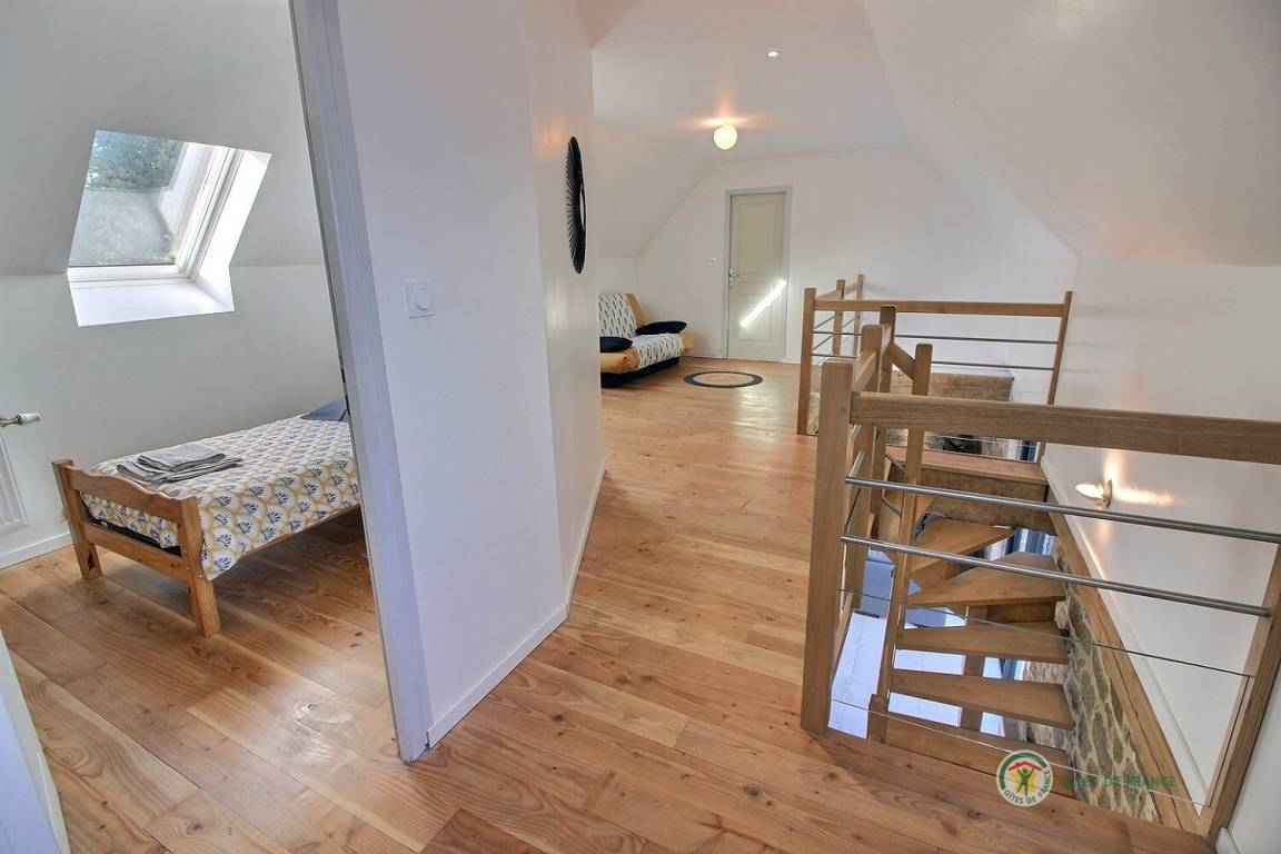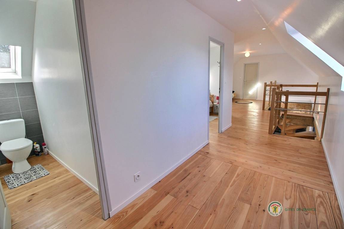 Ihre Ferienwohnung umfasst im Erdgeschoss: ein großes Wohnzimmer von mehr als 67 m² mit Küche, Wohnzimmer, Wohnzimmer mit Holzofen, 1 Schlafzimmer mit 1 Bett 160x200, in einer kleinen Nische eine steile Treppe mit Zugang zu 1 Schlafzimmer mit 1 Bett 140x190, separate Toilette mit Waschbecken, Badezimmer mit Dusche. Obergeschoss: ein großes Zwischengeschoss, 3 Schlafzimmer mit 2 Betten 160x200, 1 Bett 140x190 und 2 Betten 90x190, Badezimmer mit Dusche, separates WC. Die Heizung dieser Gîte wird von einem automatischen Holzkessel geliefert. Hof von 600 m², eine Rasenfläche von 2000 m² und eine Terrasse auf der Südseite von 90 m². Dieses Cottage ist im Erdgeschoss für eine Person mit eingeschränkter Mobilität zugänglich.