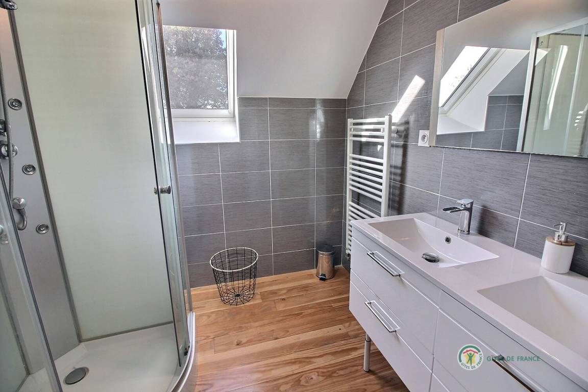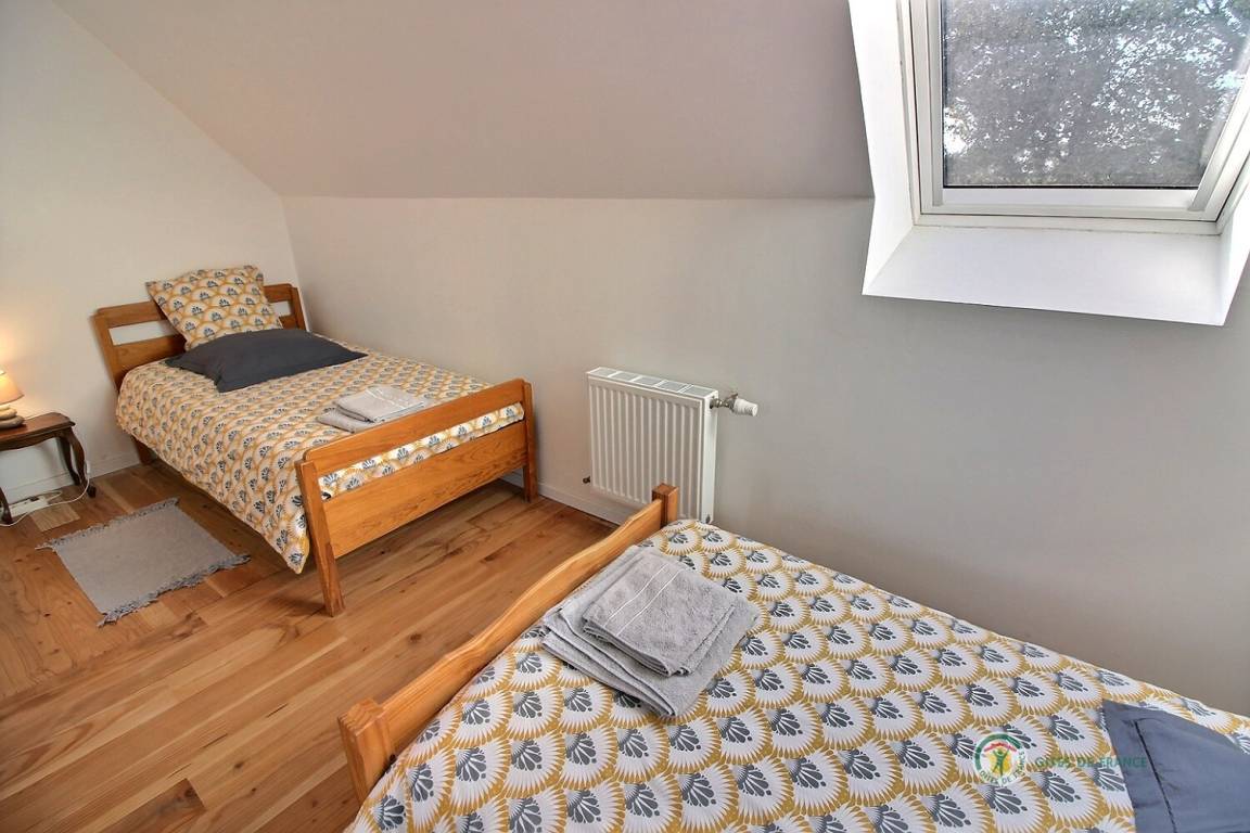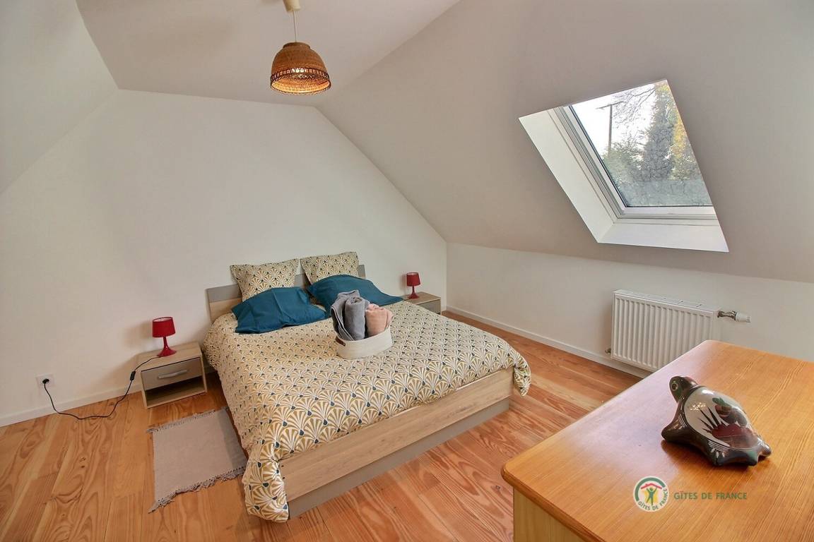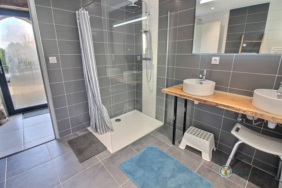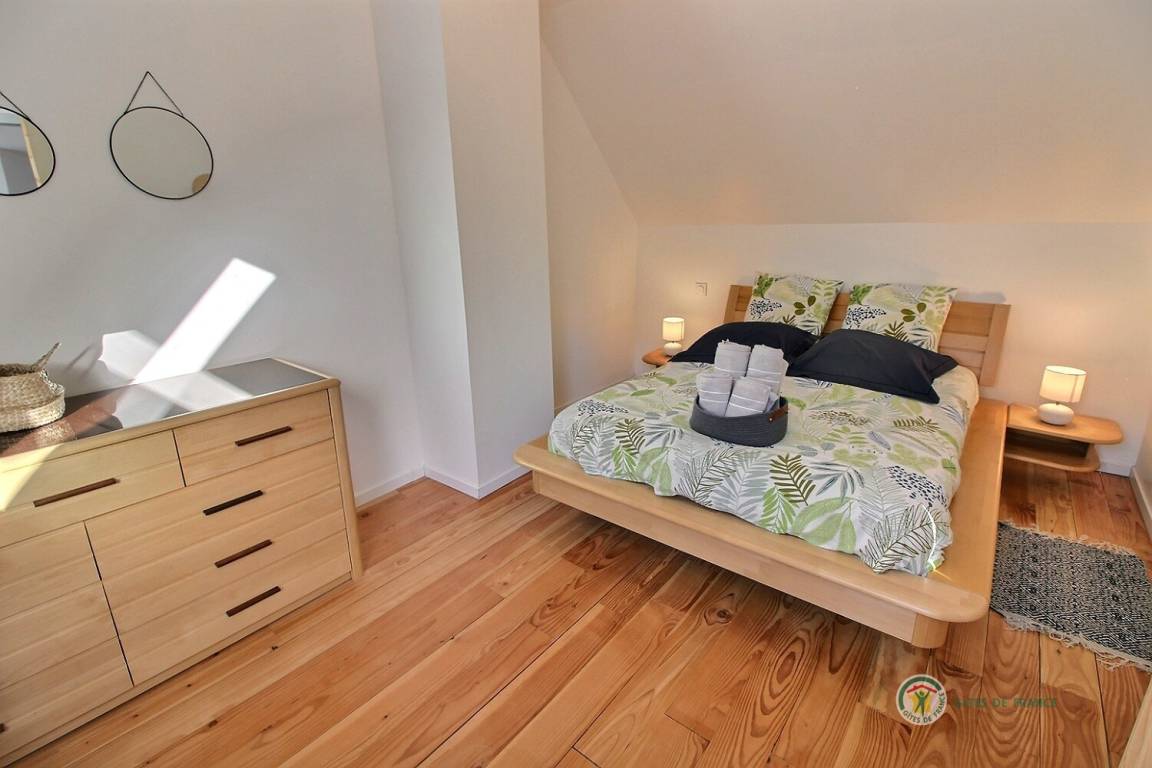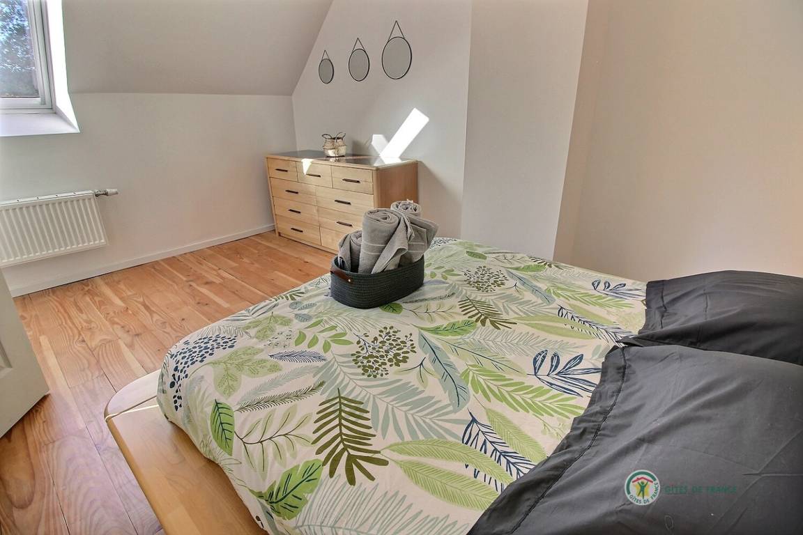 Ihre Ferienwohnung umfasst im Erdgeschoss: ein großes Wohnzimmer von mehr als 67 m² mit Küche, Wohnzimmer, Wohnzimmer mit Holzofen, 1 Schlafzimmer mit 1 Bett 160x200, in einer kleinen Nische eine steile Treppe mit Zugang zu 1 Schlafzimmer mit 1 Bett 140x190, separate Toilette mit Waschbecken, Badezimmer mit Dusche. Obergeschoss: ein großes Zwischengeschoss, 3 Schlafzimmer mit 2 Betten 160x200, 1 Bett 140x190 und 2 Betten 90x190, Badezimmer mit Dusche, separates WC. Die Heizung dieser Gîte wird von einem automatischen Holzkessel geliefert. Hof von 600 m², eine Rasenfläche von 2000 m² und eine Terrasse auf der Südseite von 90 m². Dieses Cottage ist im Erdgeschoss für eine Person mit eingeschränkter Mobilität zugänglich.