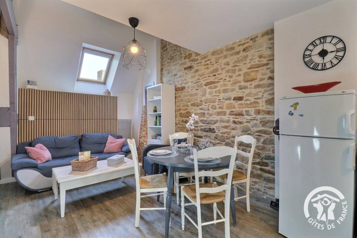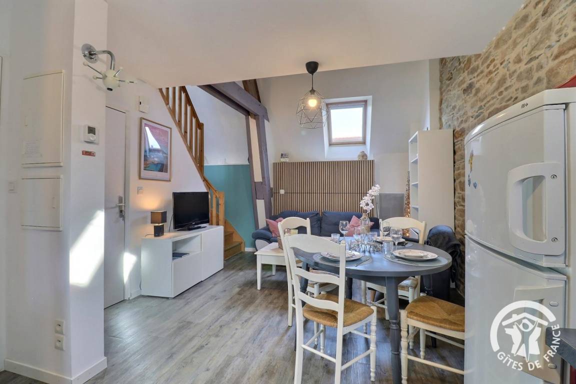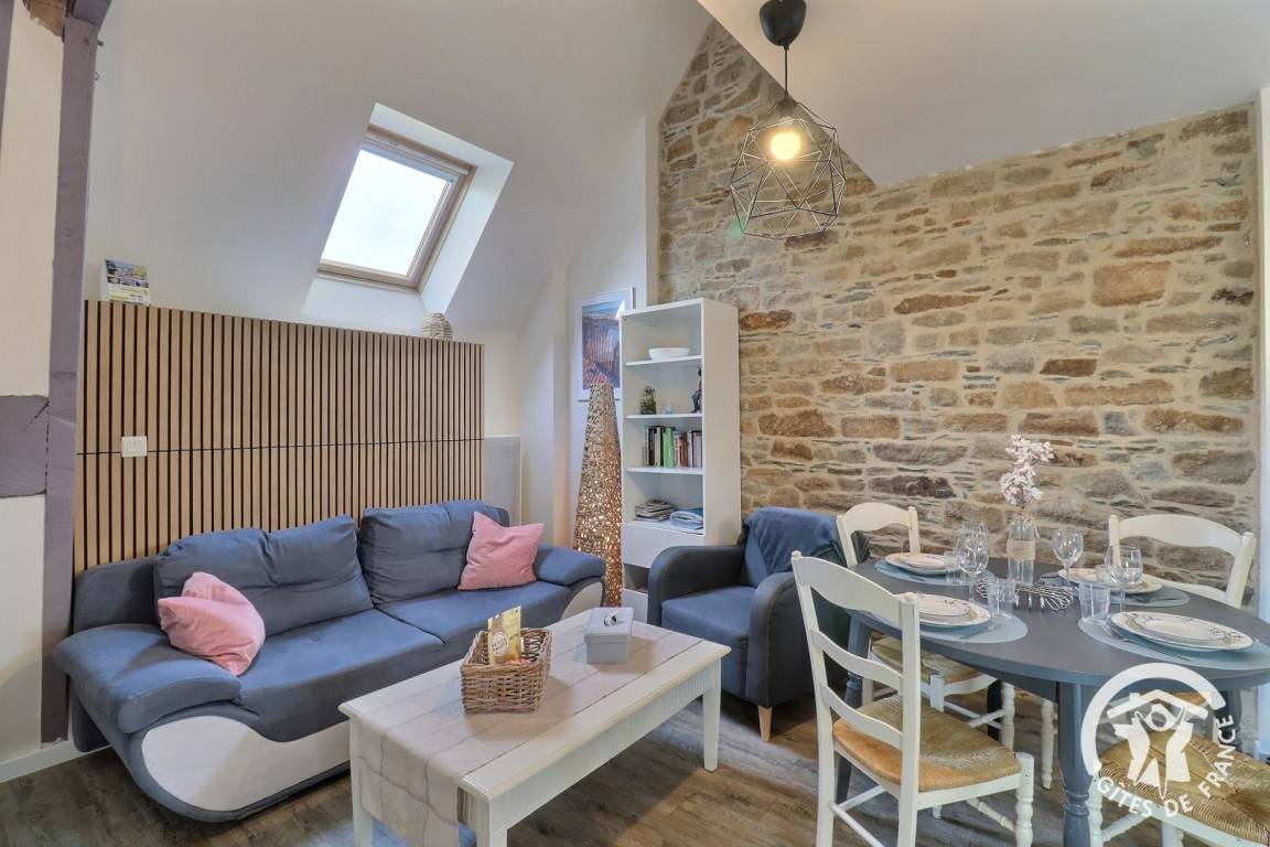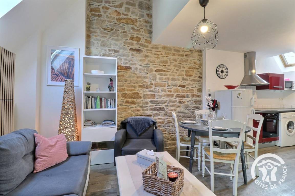 „Schöne Wohnung im Maisonette Stil. Zentral und ruhig gelegen, Bäckerei und kleiner Supermarkt direkt gegenüber. Schnell bei den Austern Produzenten und bei anderen Sehenswürdigkeiten der Bretagne und Normandie. Die Couch dürfte einmal ausgetauscht werden, da in der Mitte durchgelegen, wurde vor Ort aber auch der sehr freundlichen Vermieterin mitgeteilt. Und es gibt nur Dachfenster. Da wir aber viel unterwegs waren, stellte das kein Problem dar.“