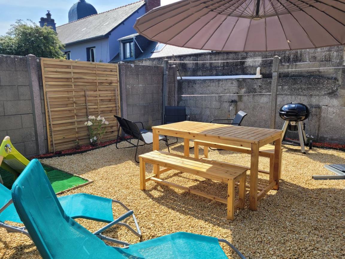 „Die Unterkunft hat unsere Erwartungen voll und ganz erfüllt. Zwar sieht die Unterkunft auf den Fotos größer aus, aber das hat uns nicht gestört, es war trotzdem ausreichend Platz vorhanden. Das Haus ist stilvoll und mit Liebe zum Detail eingerichtet und beinhaltet alles an Einrichtung und Ausstattung, was man benötigt. Zu den Sehenswürdigkeiten ist es mit dem Auto nur eine kurze Anreise. Der Ort, in dem das Haus liegt, ist klein, hat aber alles, was man so braucht...ein paar Restaurants, Spielplätze, einen Bäcker und einen kleinen Supermarkt. Einen großen Carrefour mit Tankstelle findet man in ca. 15 Minuten Fahrzeit in Dol de Bretagne. Ein kostenloser Parkplatz stand zur Verfügung, zum Meer musste man zu Fuß nur die Straße überqueren. Die Gastgeberin war sehr nett, zuverlässig und zuvorkommend. Immer wieder gerne!“