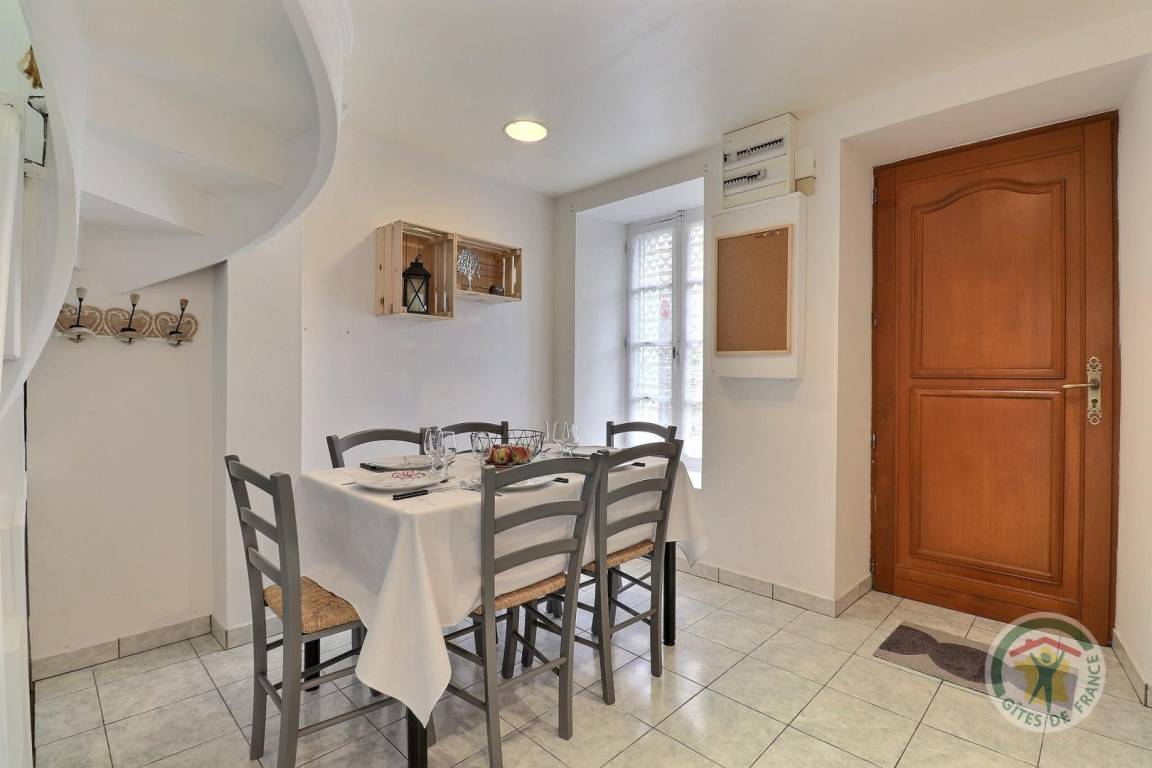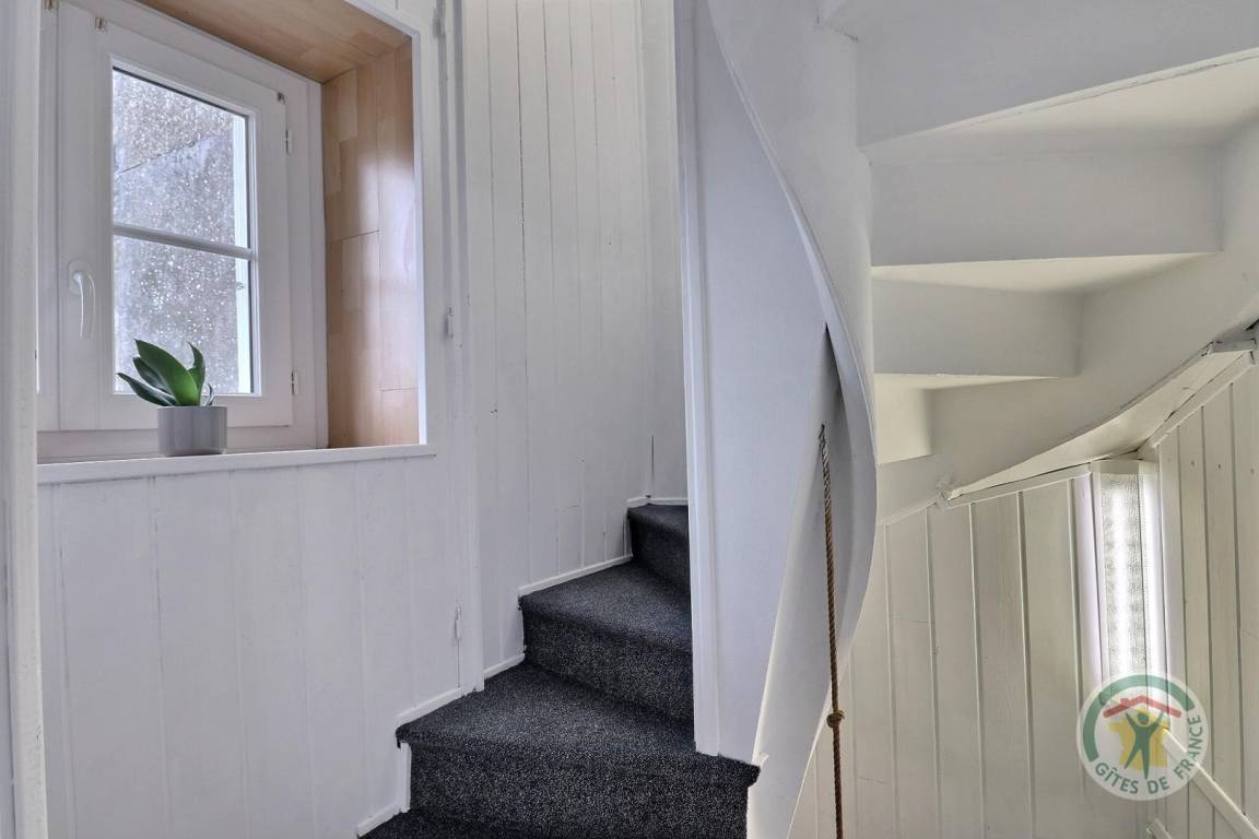 Im Erdgeschoss: ein Wohnzimmer mit Essbereich und Aufenthaltsraum, eine Küche und ein WC mit Waschbecken. Im ersten Stock über eine Wendeltreppe: ein Schlafzimmer mit einem 160 x 200 cm großen Bett und eigenem Bad mit WC. Im zweiten Stock: ein Schlafzimmer mit einem 160 x 200 cm großen Bett und eigenem Bad. Im dritten Stock: ein Schlafzimmer mit zwei Betten 90X190 und ein Badezimmer (Waschbecken und WC). Kostenlose Parkplätze an der Straße.