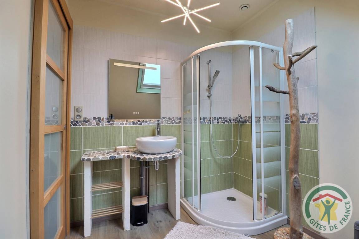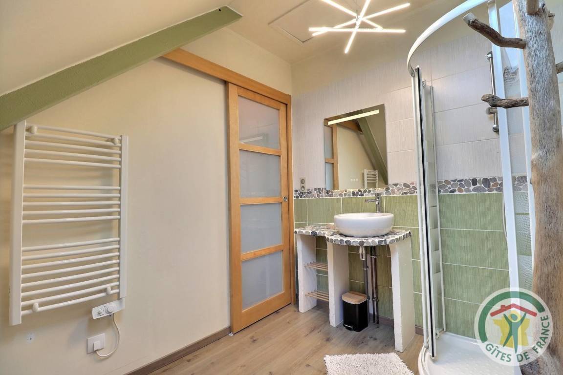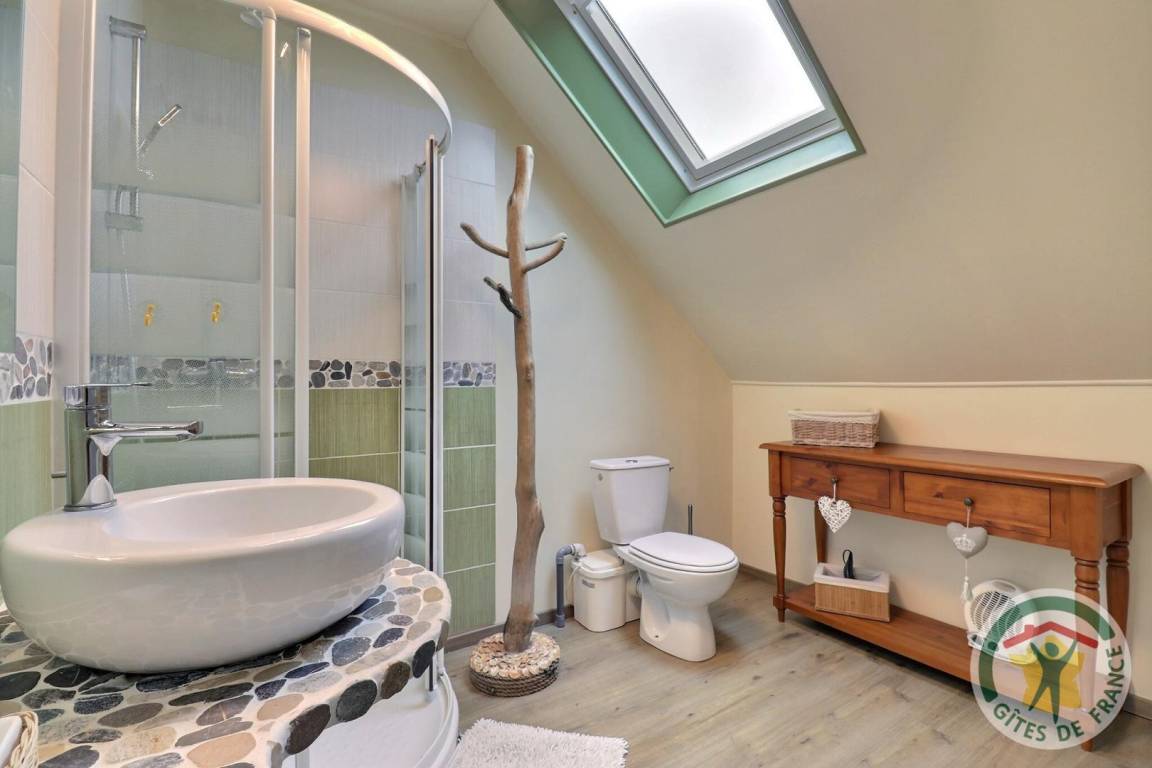 „Gîte bien situé entre Cancale et le Mont Saint Michel et proche de la grève. Jolie pièce de séjour au RDC. Une grande chambre bien aménagée, cependant il manque une table pour travailler et 1 seul siège pour 3 personnes!La seconde chambre aurait besoin d'être rénovée( peinture et papier peint), 1 seul siège pour 2 personnes, pas de table et une armoire sans penderie. la moquette est agressive et très désagréable pour marcher nu-pieds. La salle de bains est bien conçue.“
