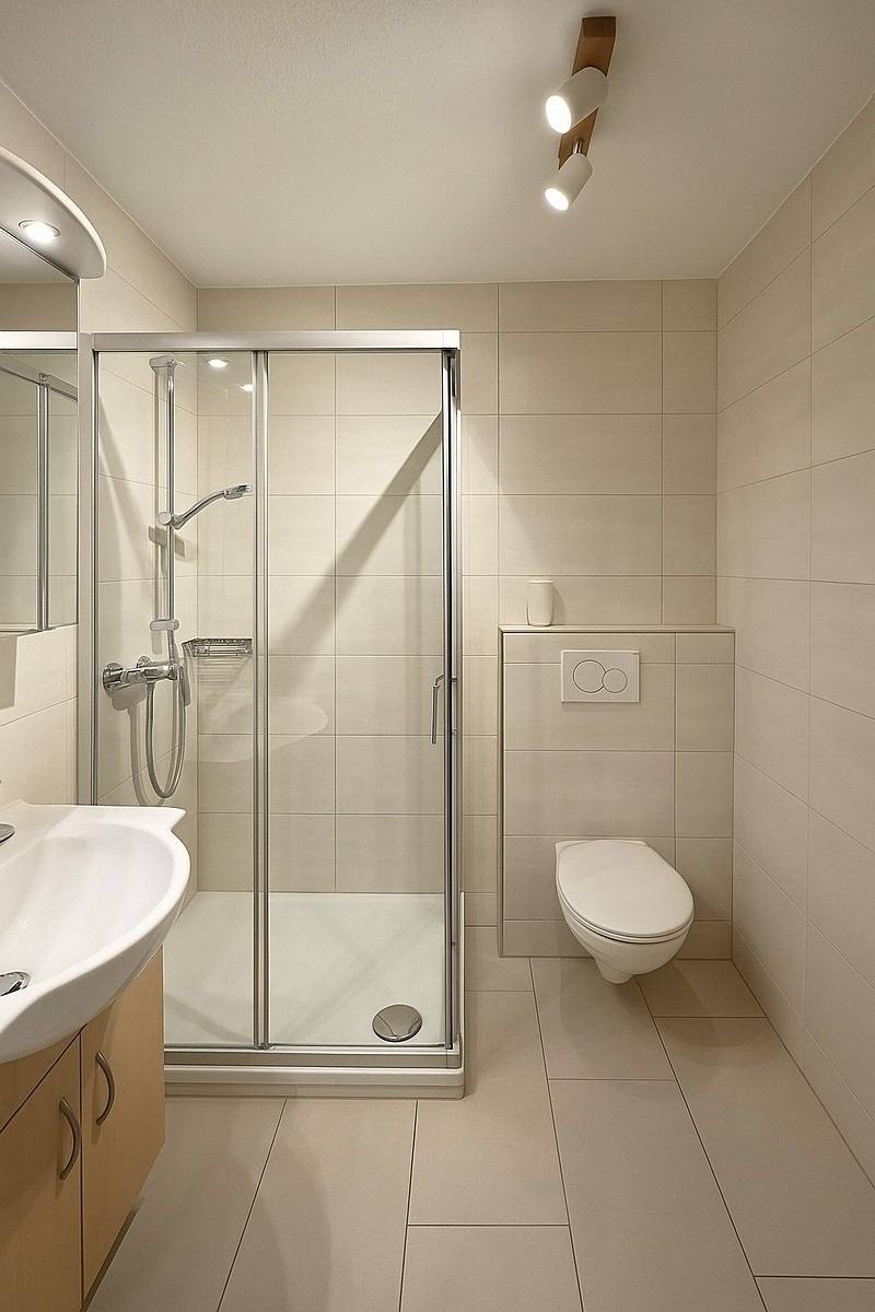 Bodenbeläge: In Flur, Küche und Bad Fliesen aus Steinzeug, in den übrigen Räumen Laminat.