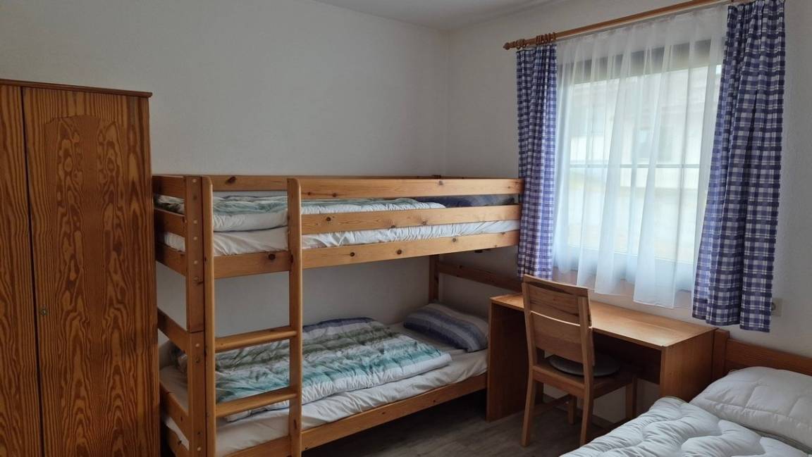 Schlafmöglichkeiten: 1 Schlafzimmer mit Doppelbett, 1 Schlafzimmer mit 1 Einzelbett und Stockbett