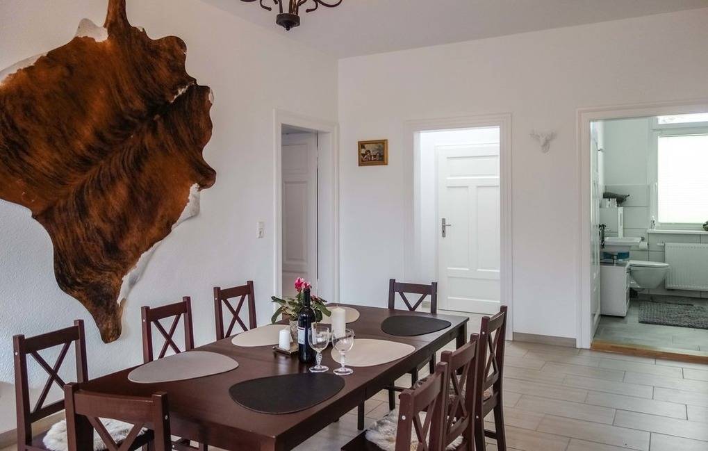 Die Unterkunft „Zur Ziegenmühle" liegt in einem 1910 erbauten idylischen Bauernhaus, das 2022 neu renoviert und die Wohnung komplett neu ausgestattet wurde. Dabei wurde speziell auf die Bedürfnisse von größeren Personengruppen geachtet. So stehen u.a. vier separate Schlafzimmer mit auseinanderziehbaren Doppelbetten plus ein Schlafsofa im Wohnbereich (= bis zu neun einzelne Schlafplätze), kostenlose Parkplätze direkt am Haus und selbstverständlich schnelles kostenloses Wlan zur Verfügung. Zusätzlich bietet es eine nahezu ideale Verkehrsanbindung.