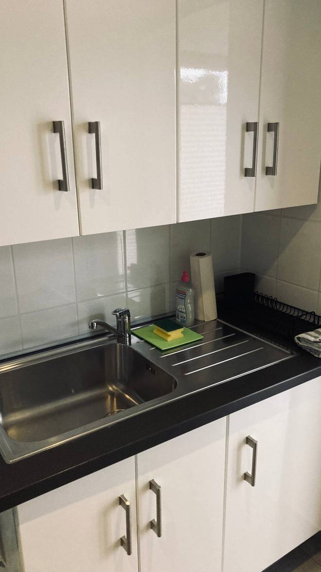 Die vollausgestatte Küche bietet nahezu alles, was man benötigt. Vom morgendlichen frischen Kaffe aus der Kaffemaschine über Wasserkocher, Mikrowelle, Ofen und Herd, finden Sie hier alles, was Geschäftsreisende für einen erfolgreichen Aufenthalt benötigen.