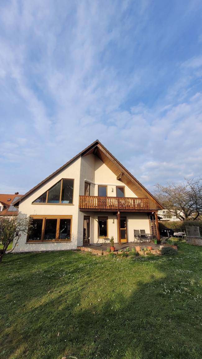 Unsere Ferienwohnung ist ca. 64 qm groß und befindet sich im ersten OG eines EHF. Sie hat einen separaten Zugang, einen großen eigenen Eingangsbereich mit Treppe zum OG. Es gibt eine Videoüberwachung im Außenbereich der Unterkunft.