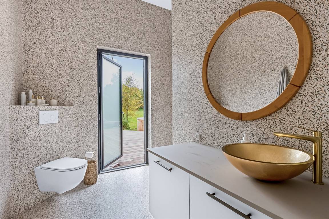 WC und BadEs gibt 1 Badezimmer mit Duschnische und 2 Toiletten, davon 1 Gästetoilette. Fußbodenheizung in 1 Badezimmer. Fußbodenheizung in der Gästetoilette.