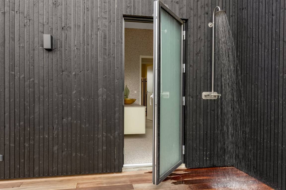 DraußenDie Ferienunterkunft liegt auf einem 2965 m² großen Naturgrundstück. Die Entfernung zum Fjord beträgt 300 m. Die nächste Einkaufsmöglichkeit liegt 5000 m entfernt. In einem Abstand von 4000 m gibt es einen Golfplatz. Es steht ein offenes Terrassenareal zur Verfügung. Außerdem gibt es überdachte Terrasse. Die Entfernung zu einem Spielplatz beträgt 500 m. Außendusche. Es ist ein Ladestecker für Elektroautos installiert. Parkplatz auf dem Grundstück.