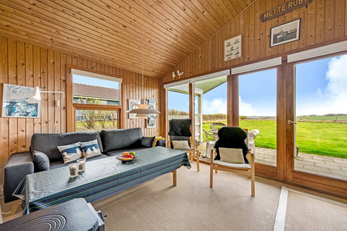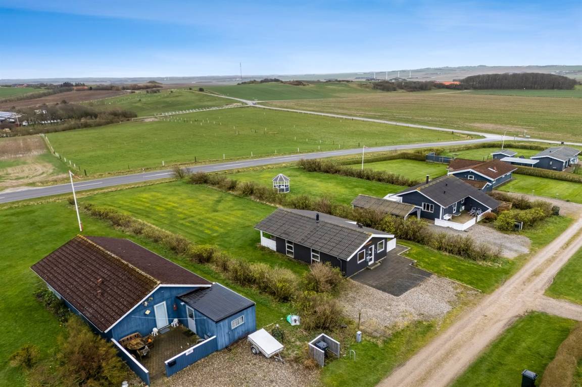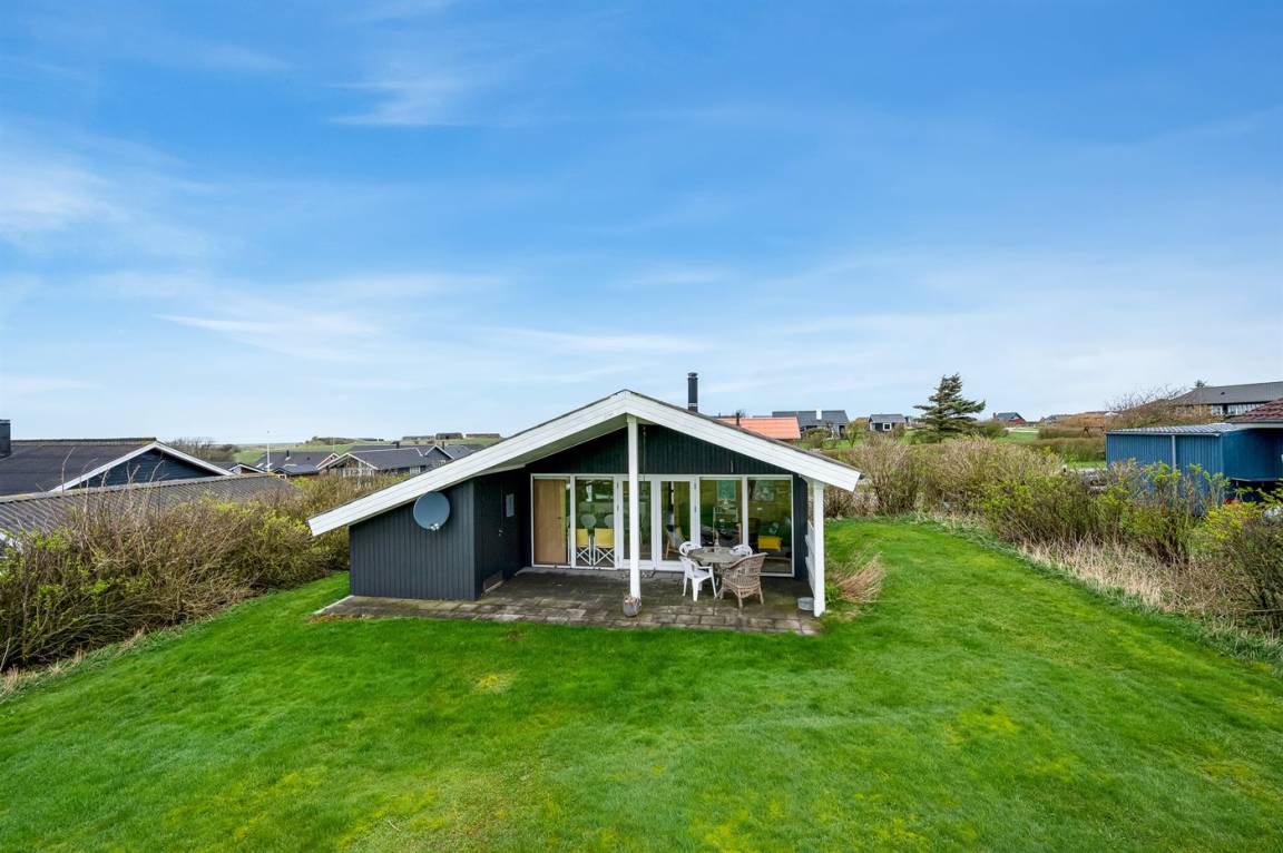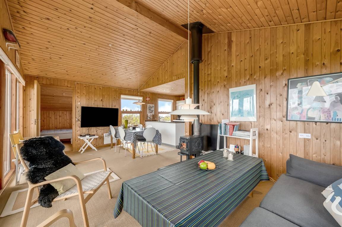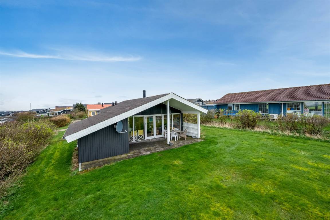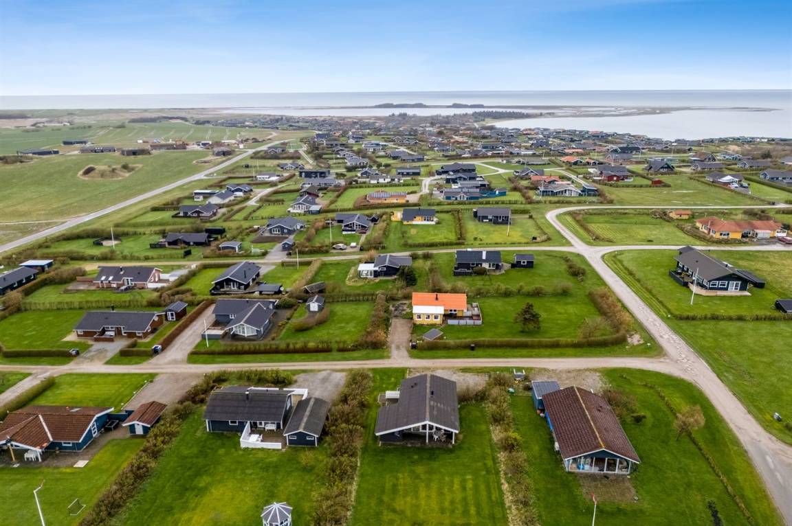 DraußenDie Ferienunterkunft liegt auf einem 978 m² großen Dünengrundstück. Die Entfernung zum Fjord beträgt 700 m. Die nächste Einkaufsmöglichkeit liegt 5000 m entfernt. Es steht ein offenes Terrassenareal zur Verfügung. Außerdem gibt es überdachte Terrasse. Parkplatz auf dem Grundstück.