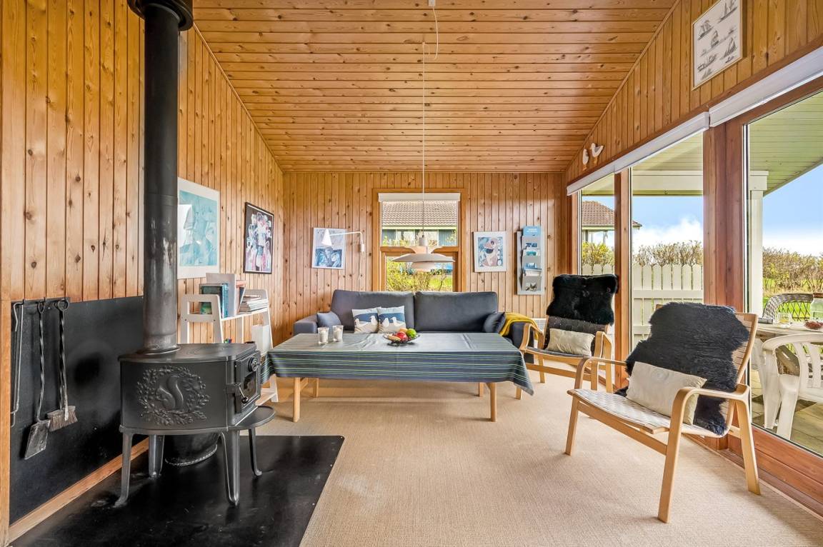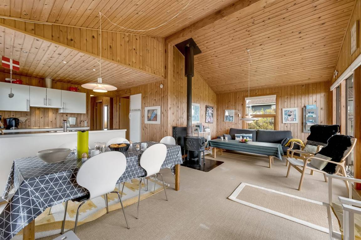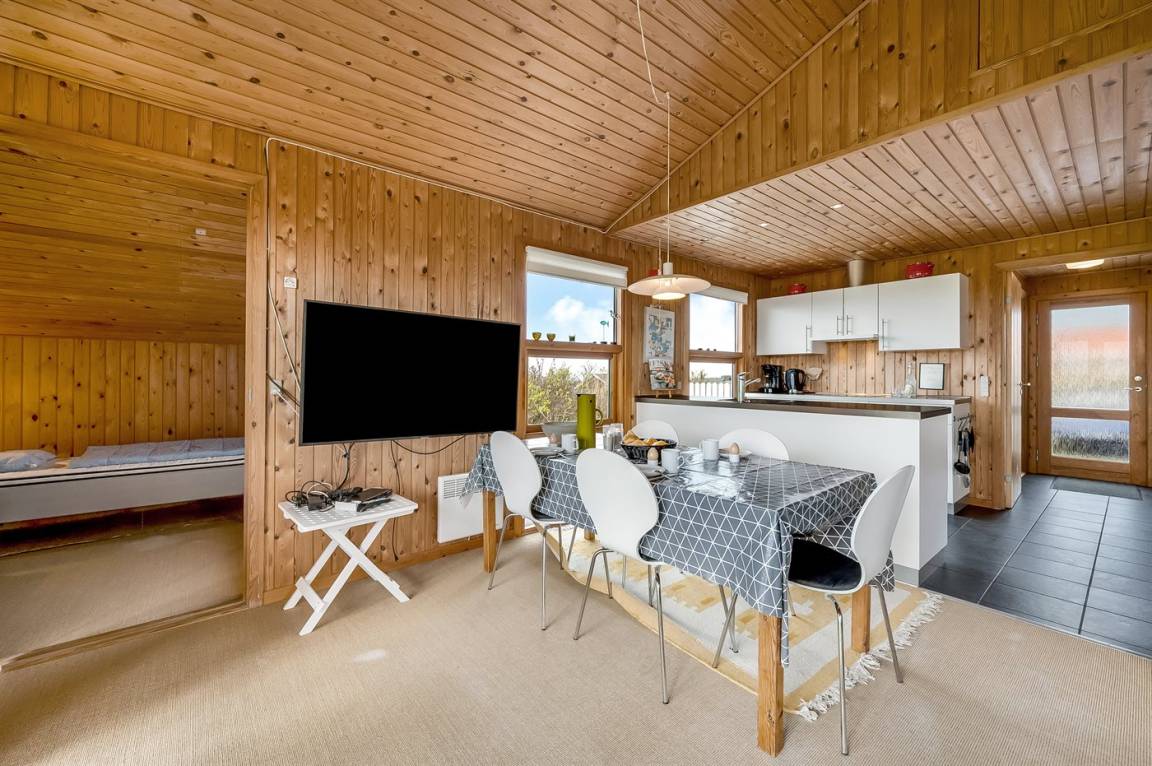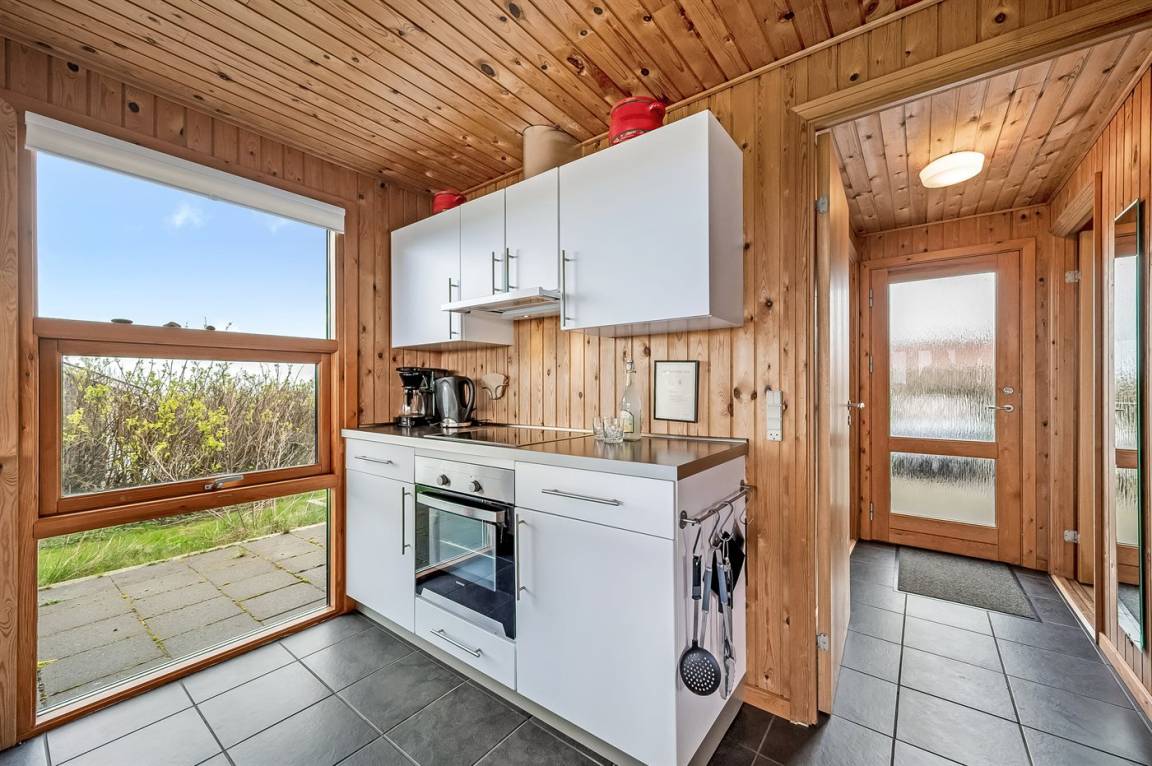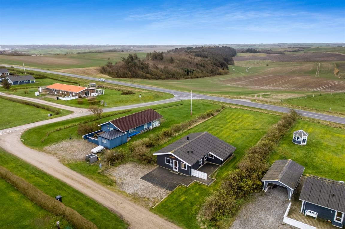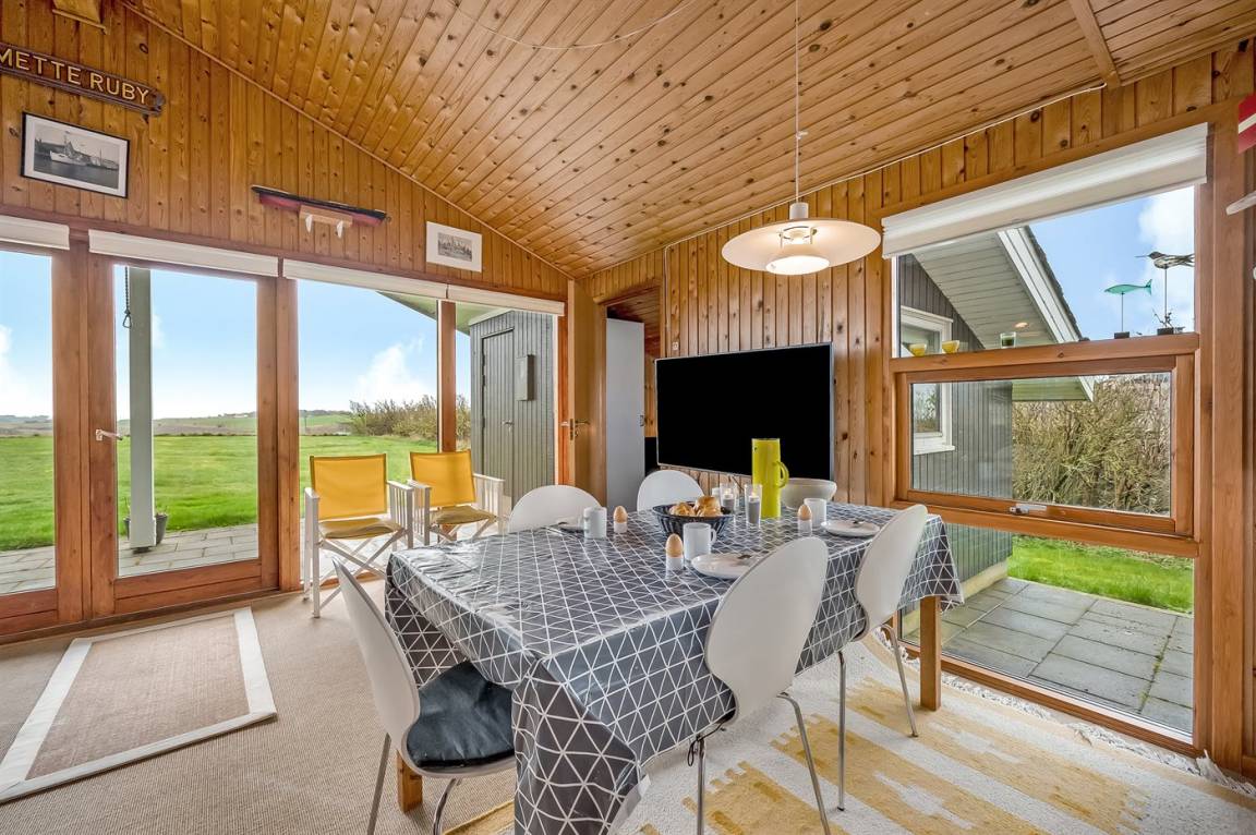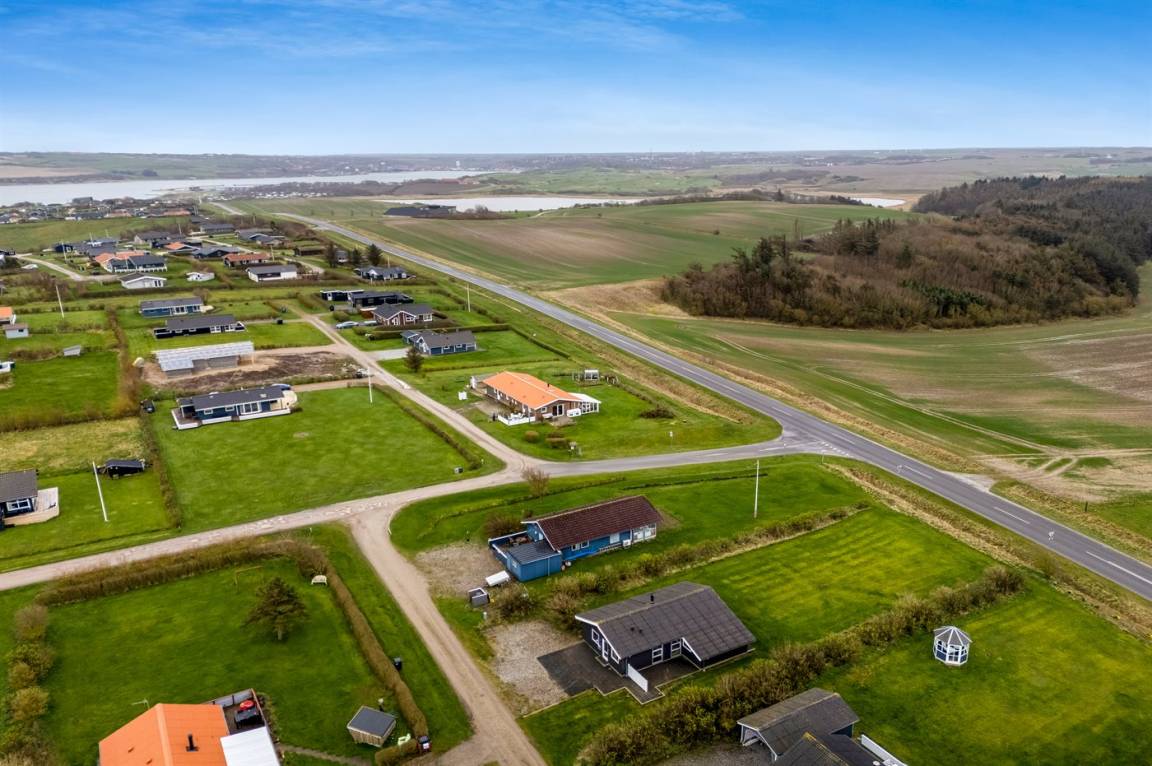 DraußenDie Ferienunterkunft liegt auf einem 978 m² großen Dünengrundstück. Die Entfernung zum Fjord beträgt 700 m. Die nächste Einkaufsmöglichkeit liegt 5000 m entfernt. Es steht ein offenes Terrassenareal zur Verfügung. Außerdem gibt es überdachte Terrasse. Parkplatz auf dem Grundstück.