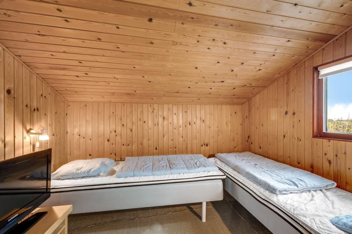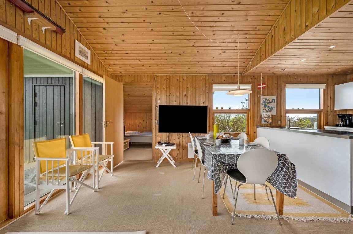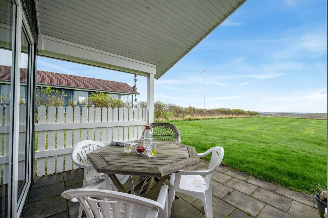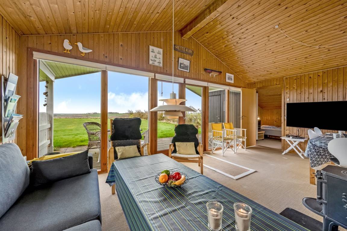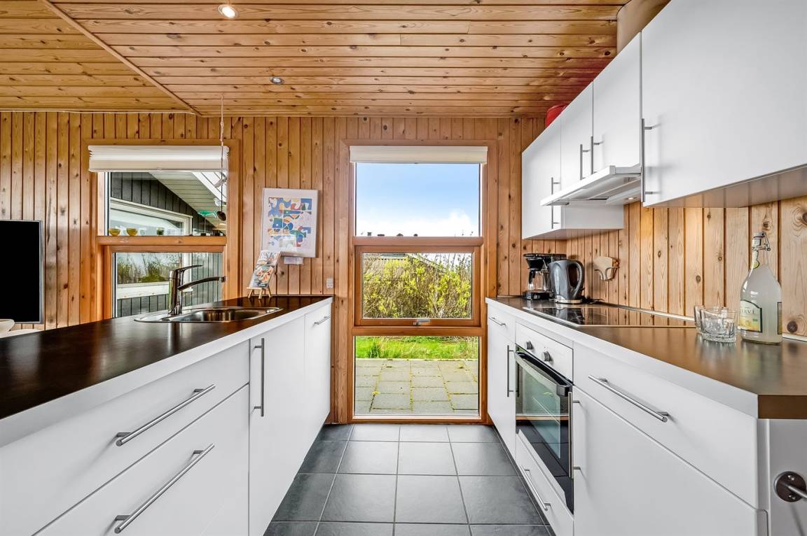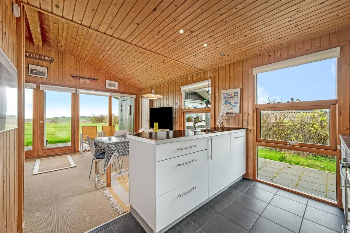 DraußenDie Ferienunterkunft liegt auf einem 978 m² großen Dünengrundstück. Die Entfernung zum Fjord beträgt 700 m. Die nächste Einkaufsmöglichkeit liegt 5000 m entfernt. Es steht ein offenes Terrassenareal zur Verfügung. Außerdem gibt es überdachte Terrasse. Parkplatz auf dem Grundstück.