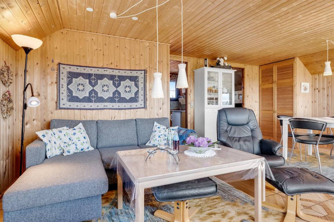 DraußenDie Ferienunterkunft liegt auf einem 1100 m² großen Naturgrundstück. Die Entfernung zum Meer beträgt 150 m. Die nächste Einkaufsmöglichkeit liegt 1000 m entfernt. Es steht ein 30 m² Terrassenareal zur Verfügung. Schaukel. Parkplatz auf dem Grundstück.