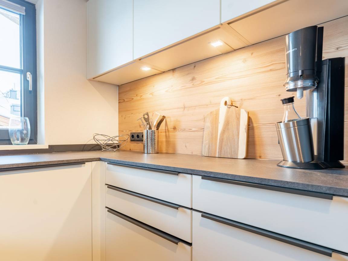 In der 1. Etage: offene Küche mit Kochendwasserhahn, Kochherd(4 Kochplatten, Induktion), Kaffeemaschine(cups, Filter), Backofen, Mikrowelle, Geschirrspüler, Kühlschrank, Tiefkühlschrank , Wohn/Esszimmer mit TV(smart TV), Esstisch, Kamin , Schlafzimmer mit Doppelbett, TV(Flatscreen) , Badezimmer mit Dusche(Regen), Waschbecken, Toilette , Balkon, Gartenmöbel