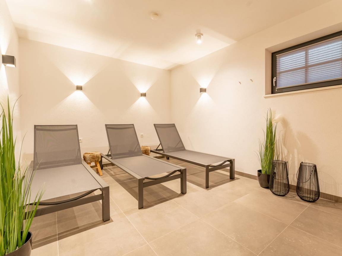 Souterrain: Ruheraum mit Dusche(Regen), Sauna, Liegestühle