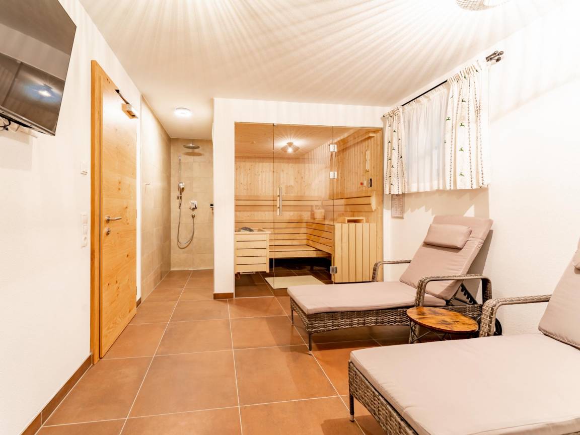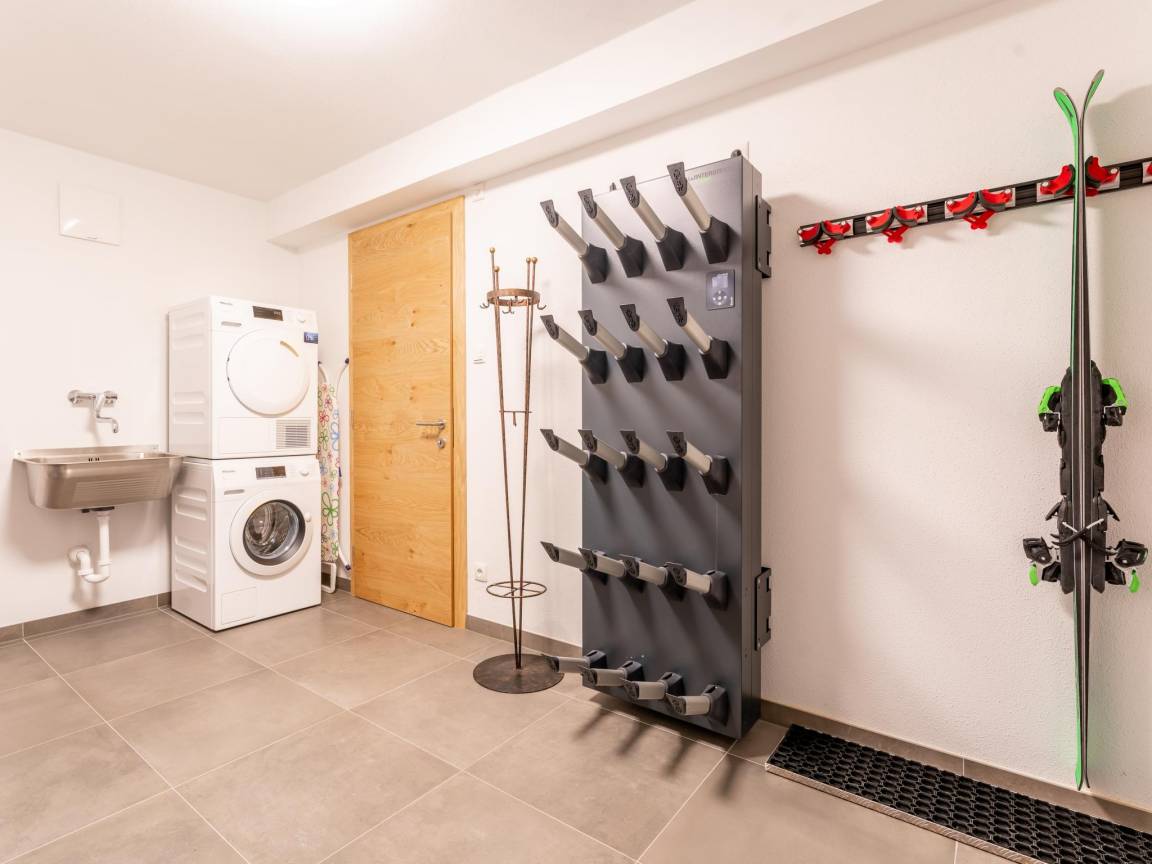 Souterrain: Diele, Toilette, Ruheraum mit TV(Kabel, Flatscreen), Dusche, Sauna, Liegestühle , Skiabstellraum mit Wäschetrockner, Waschmaschine, Skischuhheizung, Bügeleisen