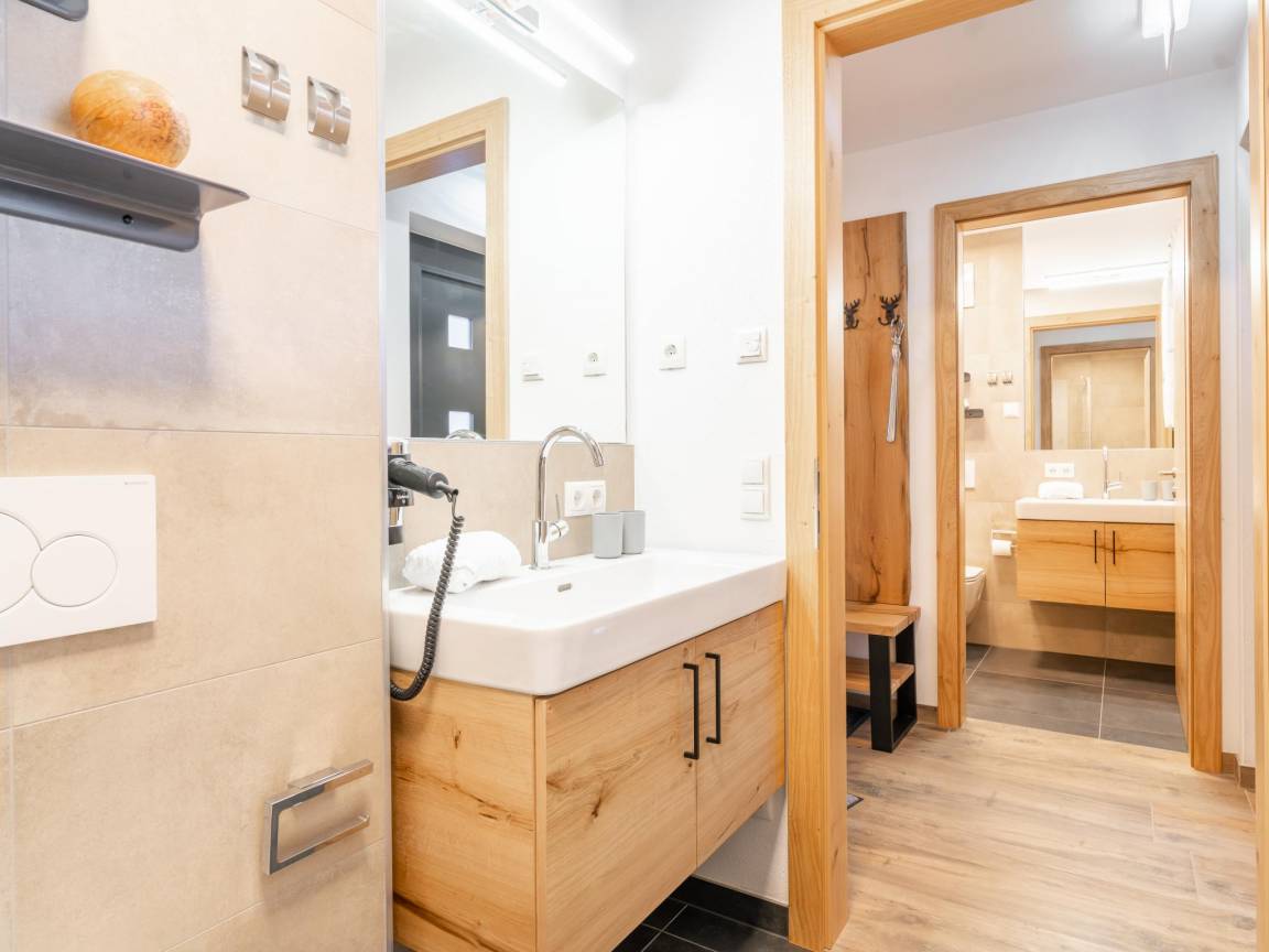 „Der Pre-CheckIn ist einfach und kann vor Anreise erledigt werden. Der Zugang mittels SchlüsselboxCode funktioniert problemlos und schon ist man drin in der tollen Unterkunft. Die Wohnung ist geräumig, lediglich die Schlafzimmer könnten ein bisschen größer sein, aber das bringt unserer sehr guten Bewertung keinen Nachteil. Die Einrichtung ist top, z. T. hochwertig und selbst für 10 Personen wäre genug Geschirr vorhanden. Der Saunaraum mit 3 Liegen, TV, Dusche und WC sowie der Waschraum bringen zusätzliche Pluspunkte. Wir haben uns sehr wohlgefühlt und können die Tauernlodge Carpe Diem nur weiterempfehlen. Wir kommen gerne wieder!“