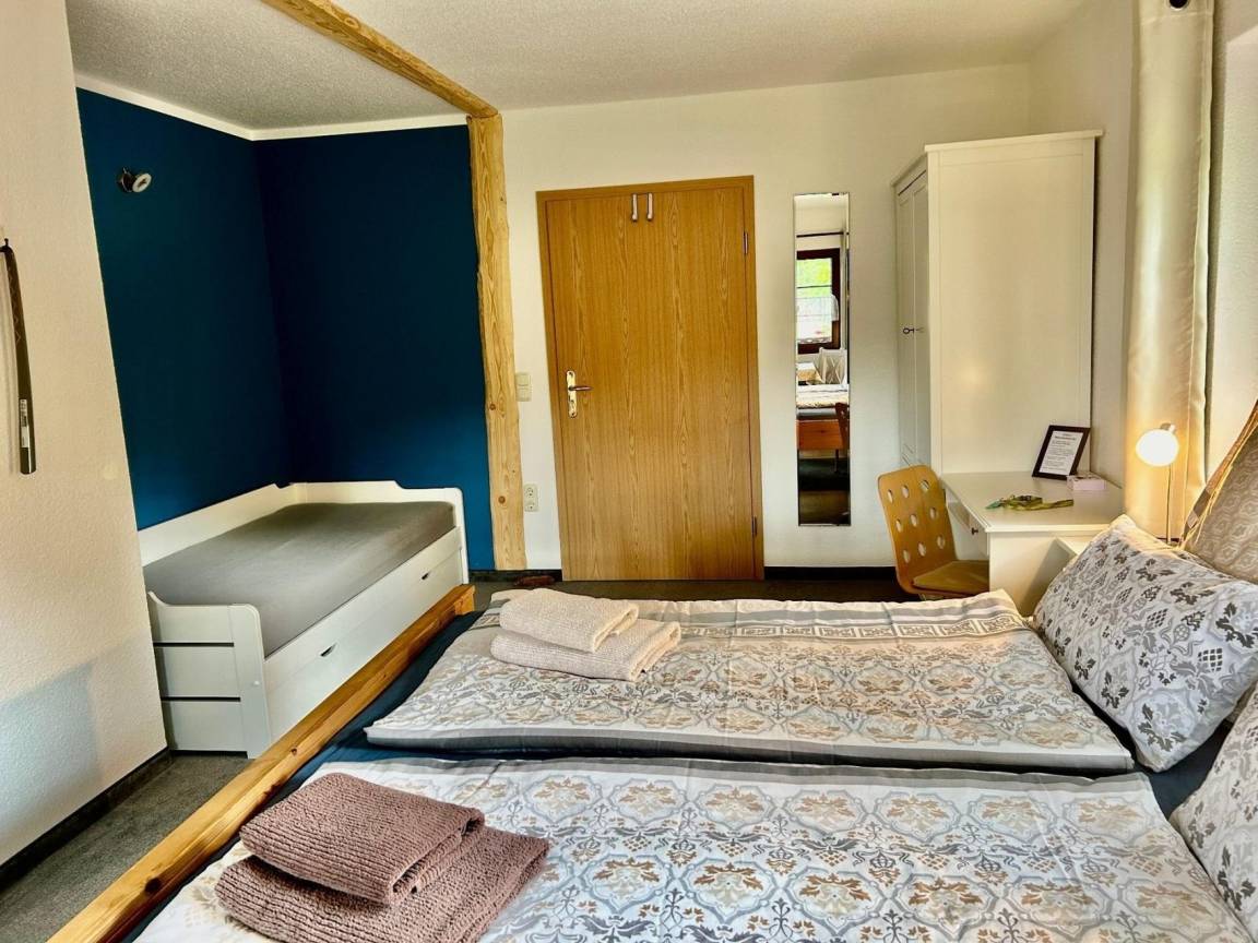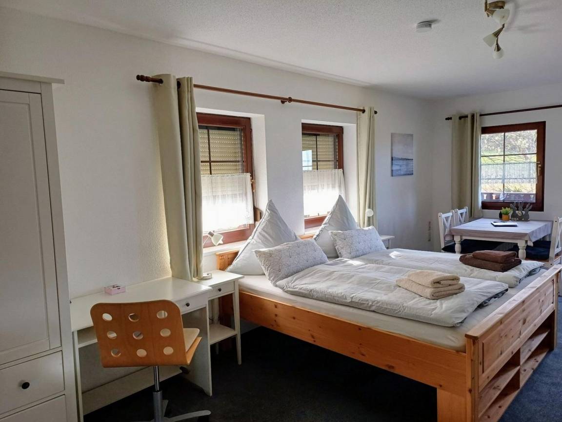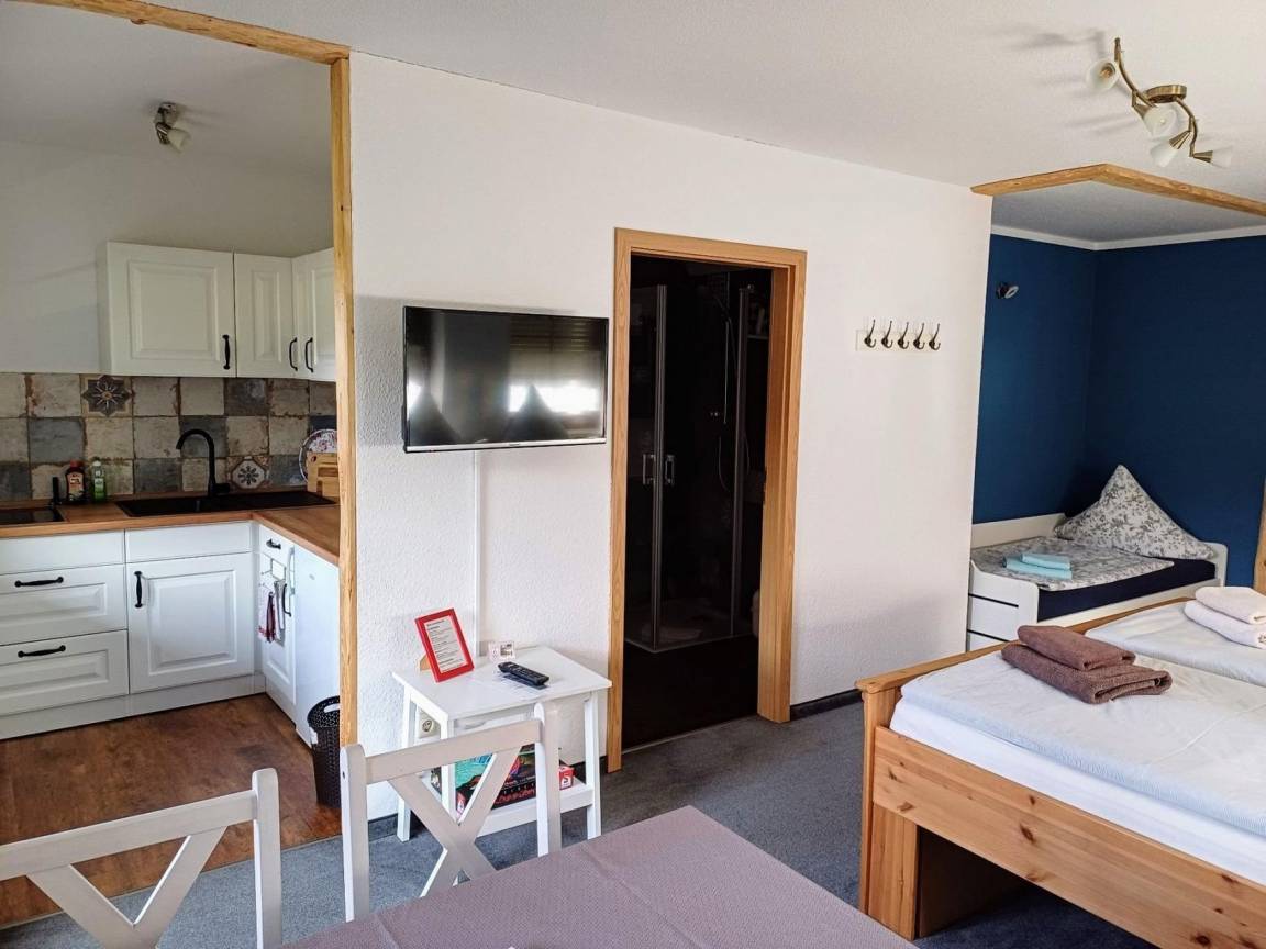 Unsere Familie heißt Sie beim Gästeliebling Vogtland 2023 + 2024 in liebevoll eingerichteten Ferienwohnungen mitten im wunderschönen Vogtland willkommen. FeWo 1 ist eine Ein-Raum-Wohnung mit offenener Küche und Essecke. Hat 1 Doppel- und 1 Einzelbett, Schreibtisch, Flachbildschirm und Badezimmer mit Dusche. Diese FeWo ist ebenerdig vom Parkplatz erreichbar und hat einen Balkon mit schöner Aussicht.Wir stellen Ihnen je Person 1 x Bettwäsche und 2 Handtücher.Pool, Sonnenterrasse, Spielplatz, Parkplatz, WLAN, Grillplatz-Nutzung sind inklusive. Bei uns können Sie in ruhiger Lage entspannen und die Natur auf Spaziergängen und Fahrradtouren genießen. Für Familientreffen, gemeinsame Mahlzeiten, Geburtstagsfeiern oder ähnliche Veranstaltungen bieten wir Ihnen unsere Pumphut's Stube an. Hier finden bis zu 24 Personen Platz.Diese berechnen wir separat mit einer einmaligen Gebühr von 50,- Euro (Reinigungs-/Nutzungsgebühr).Für die kalte Jahreszeit bieten wir Ihnen unsere Sauna an.Diese berechnen wir separat und vor Ort mit 7,50 Euro/Person.Der Plohn-Freizeitpark liegt nur ca. 1 km entfernt.DTV-Klassifizierung bis Ende 2028 - 3 Sterne.