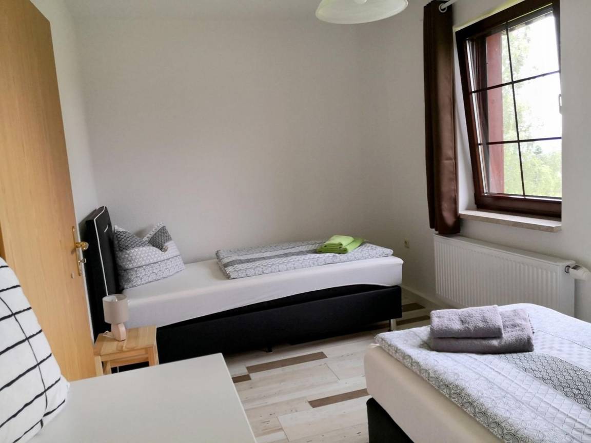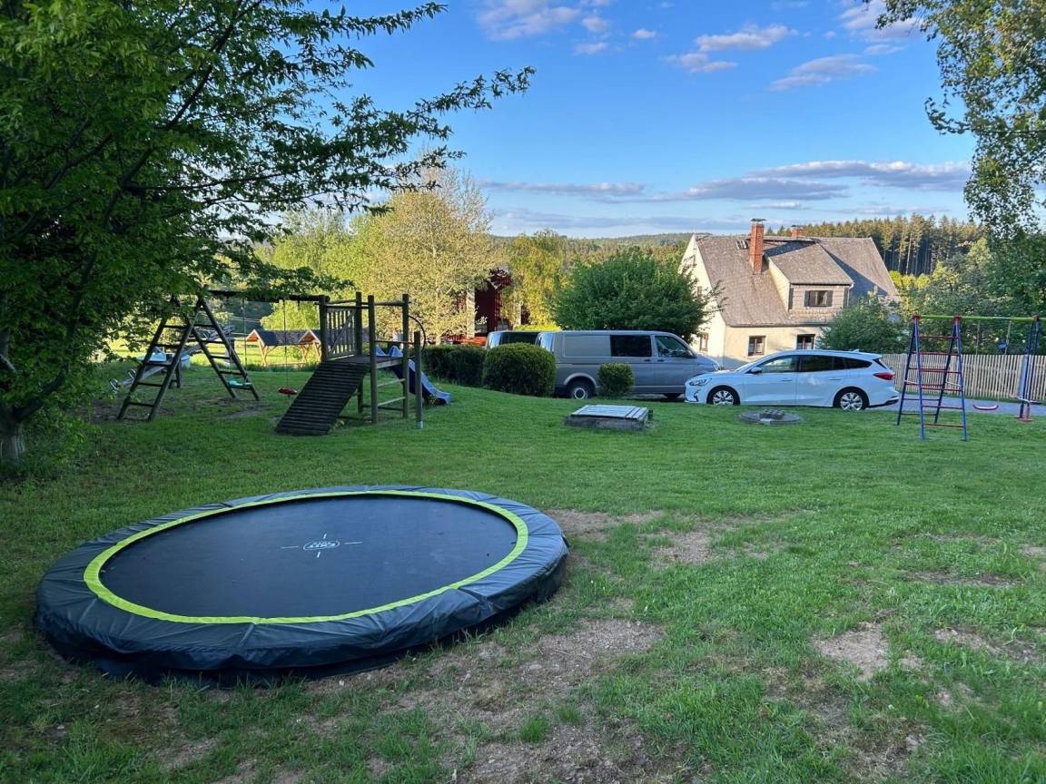 Unsere Familie heißt Sie beim Gästeliebling Vogtland 2023 + 2024 in liebevoll eingerichteten Ferienwohnungen mitten im wunderschönen Vogtland willkommen. FeWo 5 ist eine Ferienwohnung über 2 Etagen, mit eigenem Eingang, Terrasse mit Grill und Ess-/Sitzbereich sowie schöner Ausssicht ins Tal.Diese FeWo hat im EG eine große Küche mit Essecke, Eingangs-Flur sowie Wohnzimmer mit Flachbildschirm, Leder-Sitzecke und 1 Schlafsofa (120 x 200 cm) welches aufgebettet werden kann. Im 1. OG einen Flur, 1 Badezimmer und 2 Schlafzimmer.1. Schlafzimmer: 1 großes Doppelbett + 1 Einzelbett2. Schlafzimmer: 2 Einzel-BoxspringbettenWir stellen Ihnen je Person 1 x Bettwäsche und 2 Handtücher.Pool, Sonnenterrasse, Spielplatz, Parkplatz, WLAN, Grillplatz-Nutzung sind inklusive. Bei uns können Sie in ruhiger Lage entspannen und die Natur auf Spaziergängen und Fahrradtouren genießen. Für Familientreffen, gemeinsame Mahlzeiten, Geburtstagsfeiern oder ähnliche Veranstaltungen bieten wir Ihnen unsere Pumphut's Stube an. Hier finden bis zu 24 Personen Platz.Diese berechnen wir separat mit einer einmaligen Gebühr von 50,- Euro (Reinigungs-/Nutzungsgebühr).Für die kalte Jahreszeit bieten wir Ihnen unsere Sauna an.Diese berechnen wir separat und vor Ort mit 7,50 Euro/Person.Der Plohn-Freizeitpark liegt nur ca. 1 km entfernt.Hier sind Hunde willkommen.Je Hund berechnen wir 5,- €/Nacht + 30,- € Endreinigung.DTV-Klassifizierung bis Ende 2028 - 4 Sterne.