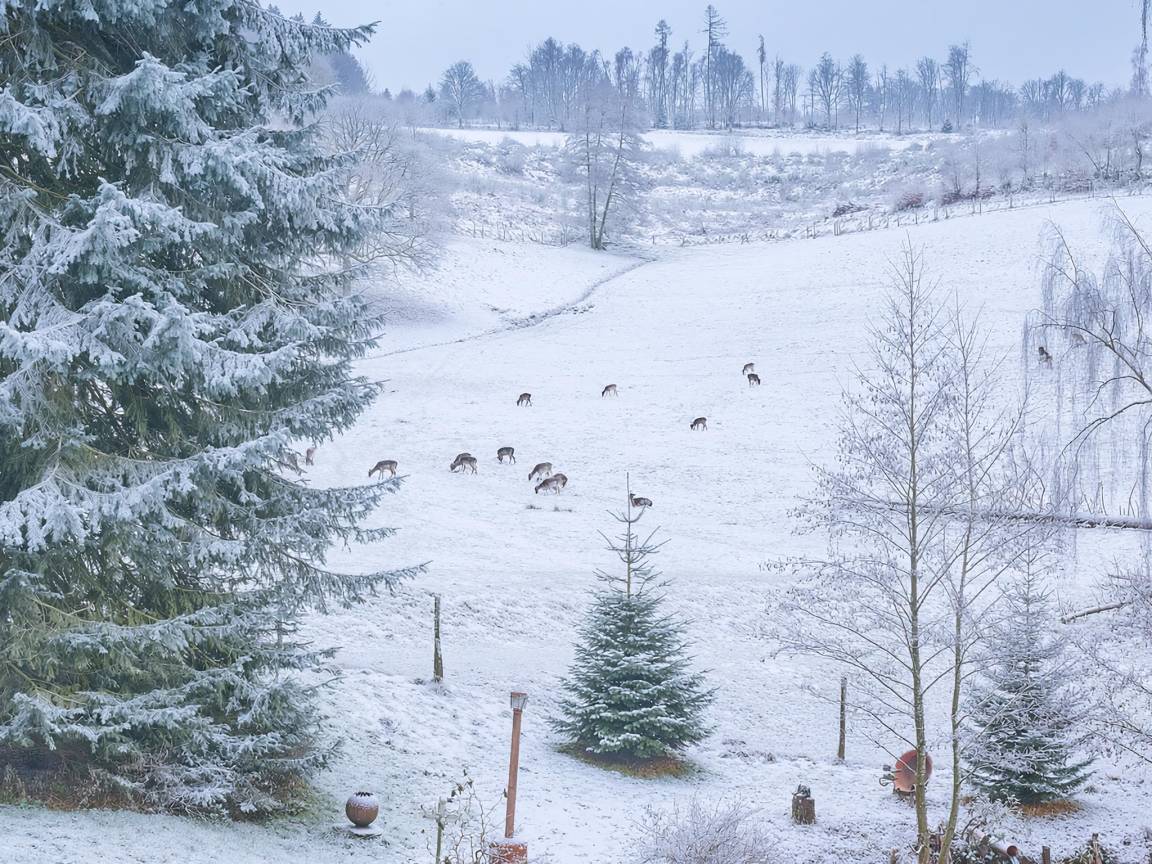 Die Ferienwohnung liegt idyllisch in einem ruhigen Tal im Herzen des Sauerlands – umgeben von Wiesen, Wäldern und Teichen. Direkt neben dem Haus lädt ein Damwildgehege zum Beobachten ein, während der Blick ins Grüne für Entschleunigung sorgt.
