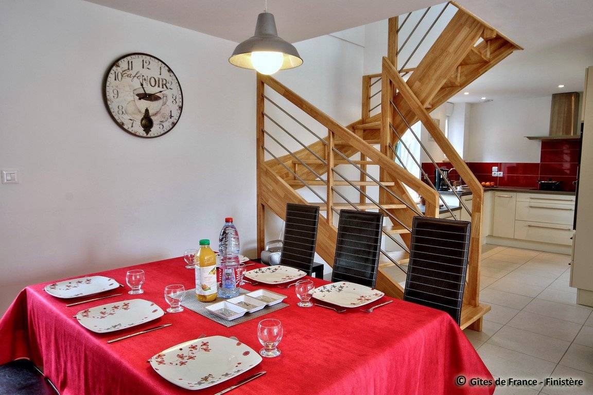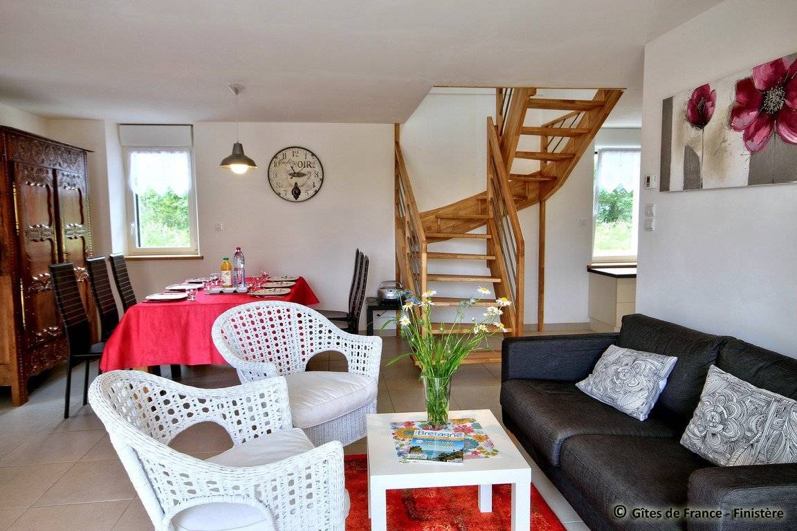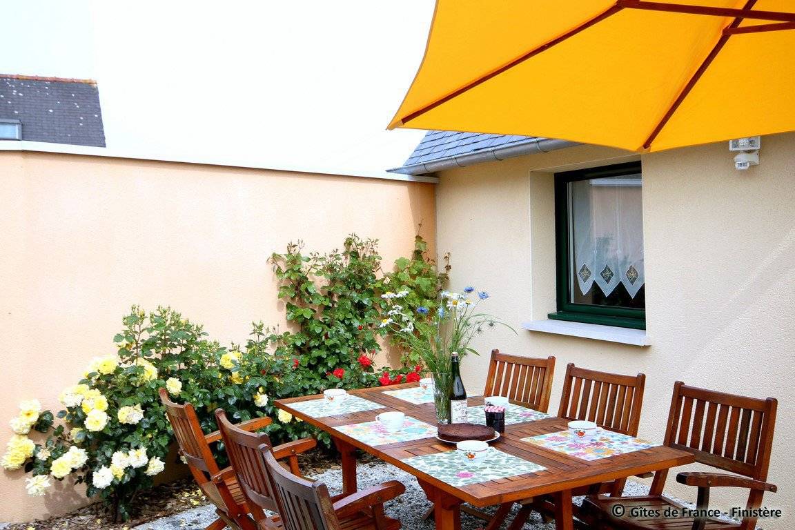 Dieses Haus grenzt an ein weiteres Haus. Es steht im Herzen von Finistère. Eine ideale Lage für Touren im Ganzen Finistère. Betten bei Ankunft bezogen. EG : Wohn-Essraum mit Kochecke, Doppelbettzimmer (Bettbreite 160cm), Dusche, WC. 1. Stock : Doppelbettezimmer (Bettbreite 160cm), Zweibettzimmer, WC mit Waschbecken. E-Heizung. Umzäunter Garten, Gartenmöbel, Grill. 4 Fahrräder für Erwachsene und 1 Kinderrad stehen zur Verfügung.