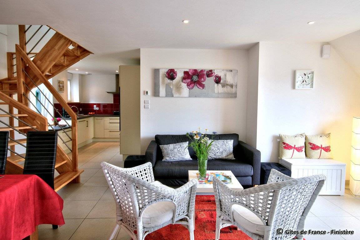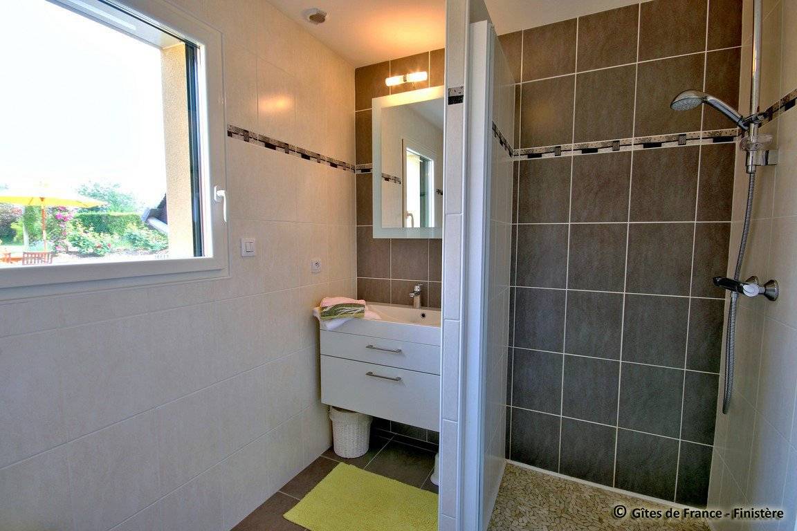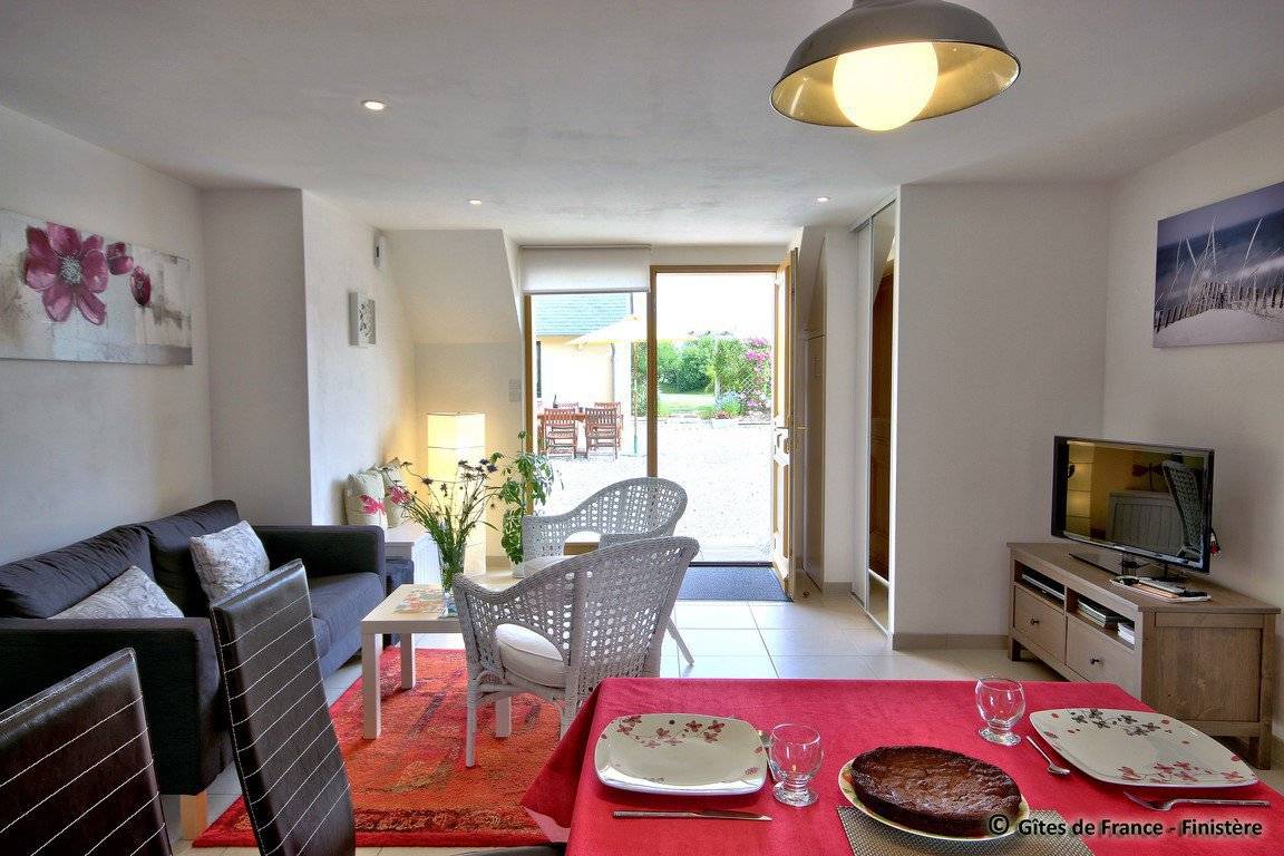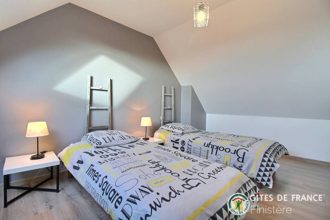 Dieses Haus grenzt an ein weiteres Haus. Es steht im Herzen von Finistère. Eine ideale Lage für Touren im Ganzen Finistère. Betten bei Ankunft bezogen. EG : Wohn-Essraum mit Kochecke, Doppelbettzimmer (Bettbreite 160cm), Dusche, WC. 1. Stock : Doppelbettezimmer (Bettbreite 160cm), Zweibettzimmer, WC mit Waschbecken. E-Heizung. Umzäunter Garten, Gartenmöbel, Grill. 4 Fahrräder für Erwachsene und 1 Kinderrad stehen zur Verfügung.