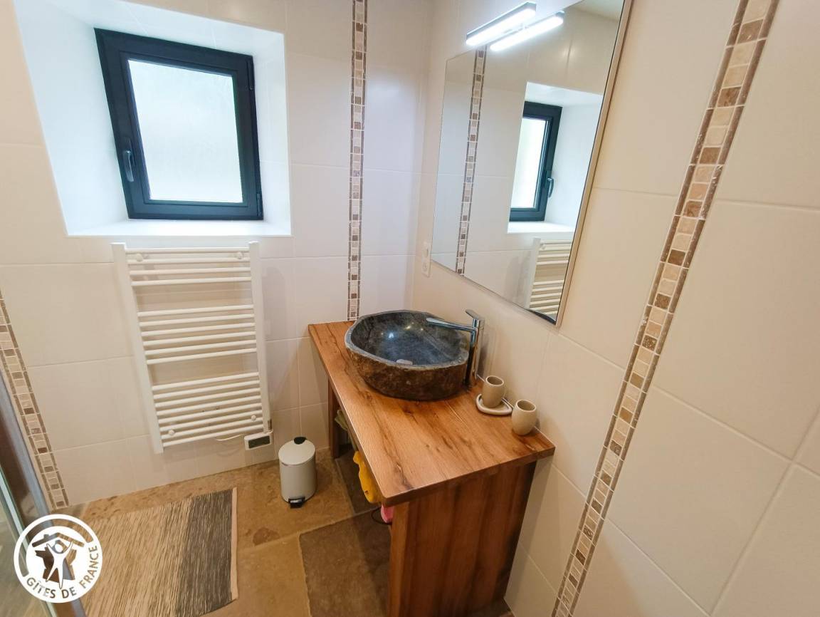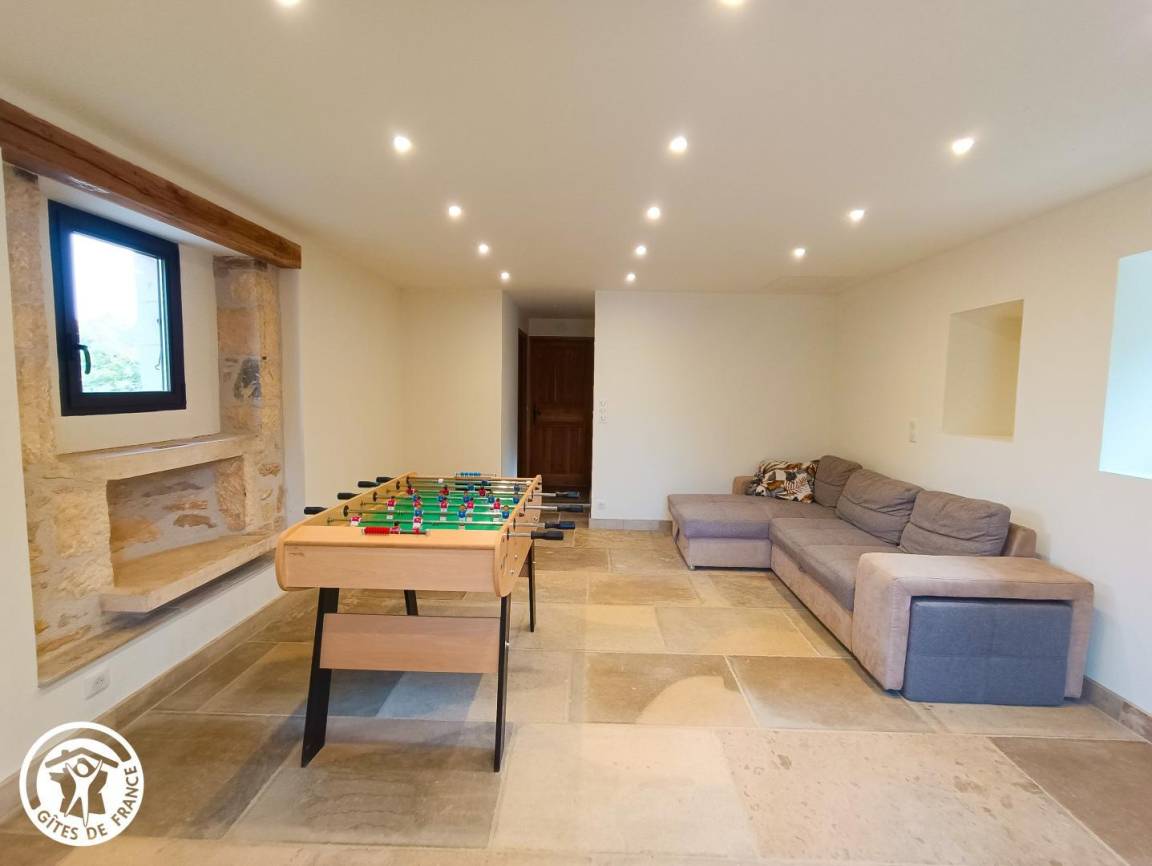 „Nous avons eu un accueil chaleureux malgré notre arrivée tardive. Location très sympathique située dans un endroit beau et calme, tout pour se ressourcer. Bien équipée et fonctionnelle. Piscine et babyfoot sont vraiment des plus.“