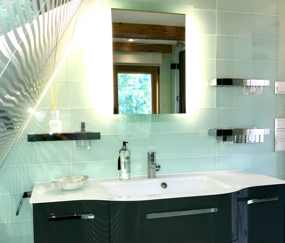 Im Obergeschoss erwartet dich ein stilvolles Schlafzimmer mit traumhaftem Seeblick. Dazu bietet das moderne Bad mit begehbarer Regendusche höchsten Komfort.