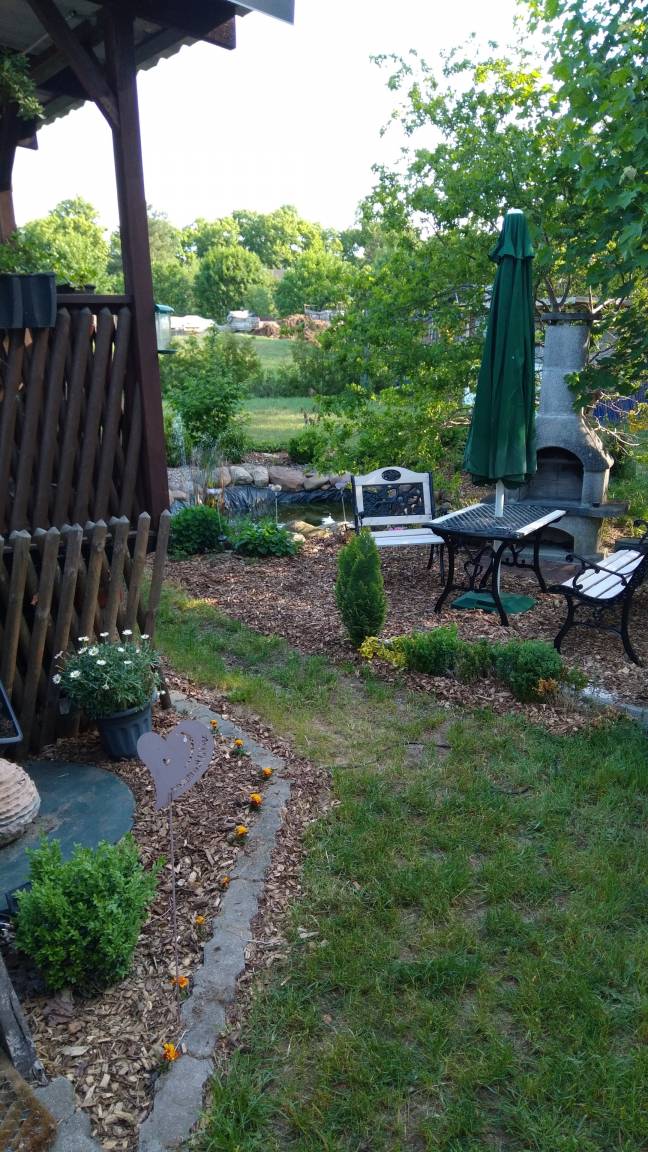 Es ist im Aussenbereich eine Badewanne und Dusche vorhanden so das man unter freien Himmel baden oder Duschen kann .Der Bauwagen steht separat so das sie am kleinen Teich mit Grillplatz schön ihre Privatsphäre genießen können .In der Nähe liegt das Rambower Moor mit See, der ein schönen Wander oder Radweg Besitz der ca 13 km beträgt . Man kann vom Objekt direkt starten.