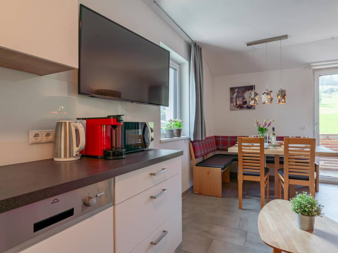 Hausbeschreibung : Moderne Wohnung in der Nähe des Zentrums von Leogang. Die Wohnung befindet sich im rechten Teil des Hauses, im ersten Stock. Es gibt ein Wohnzimmer mit luxuriöser, moderner Schlafcouch und eine voll ausgestattete Küche. Vom Wohnzimmer aus hat man direkten Zugang zu einem schönen, sonnigen Balkon mit herrlicher Aussicht. Es gibt keinen Zugang zum Garten. Im Keller befinden sich eine Sauna, ein Ruheraum, ein Skiraum und eine Waschmaschine, die mit den Gästen der anderen Wohnung geteilt werden
