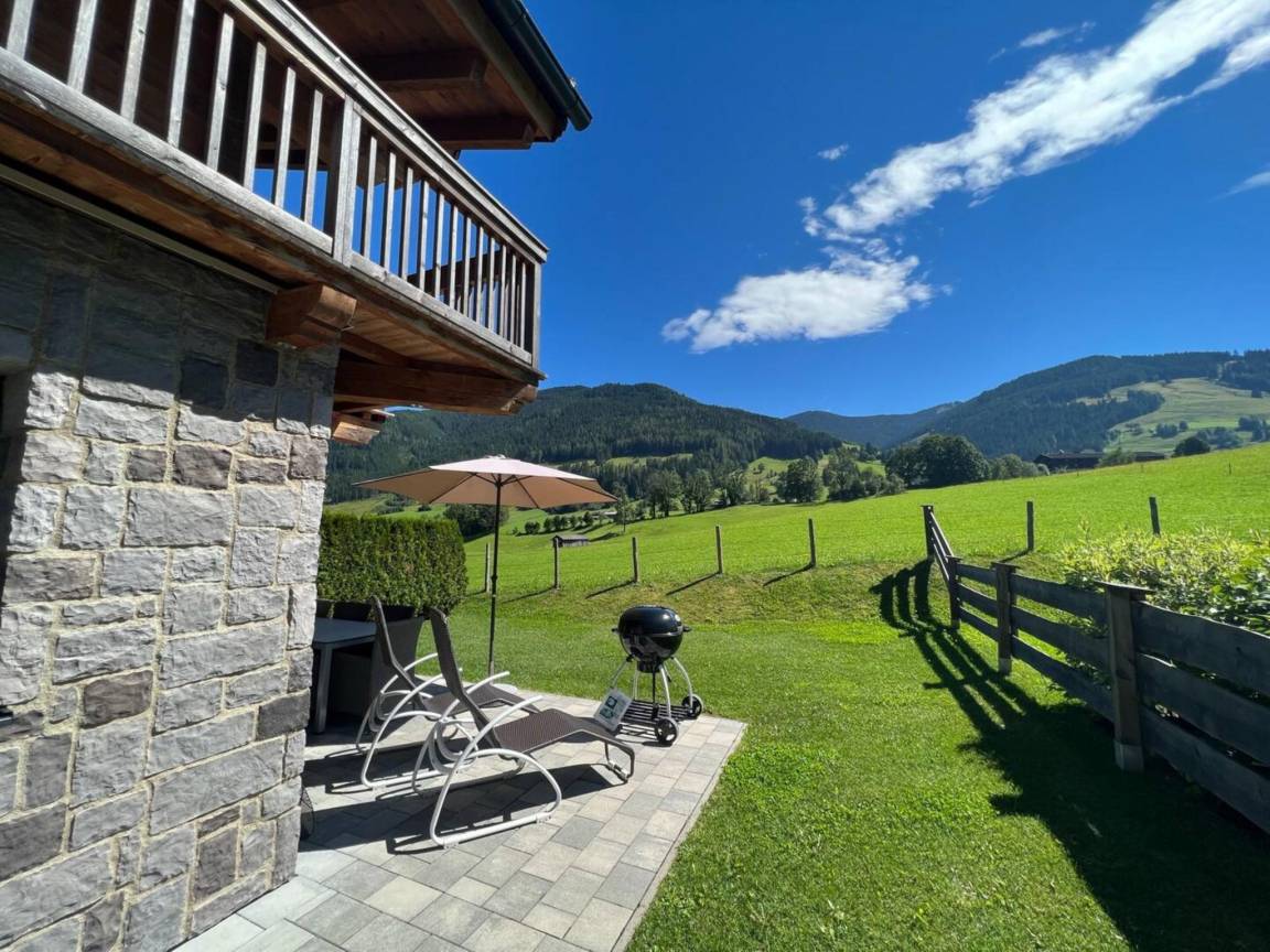 Hausbeschreibung : Dieses hochwertig ausgestattete Chalet befindet sich in der Nähe des Zentrums von Leogang und bietet eine herrliche Aussicht von Balkon und Terrasse. Das Chalet ist eine Doppelhaushälfte und befindet sich vom Garten aus gesehen auf der linken Seite. Es gibt einen Skiabstellraum mit Skischuhtrockner und einen privaten Wellnessbereich mit Sauna. Das Chalet ist eine ideale Unterkunft für Familien oder gemeinsam reisende Freunde. Vom Wohnzimmer erreichen Sie einer Terrasse mit eingezäuntem Garten