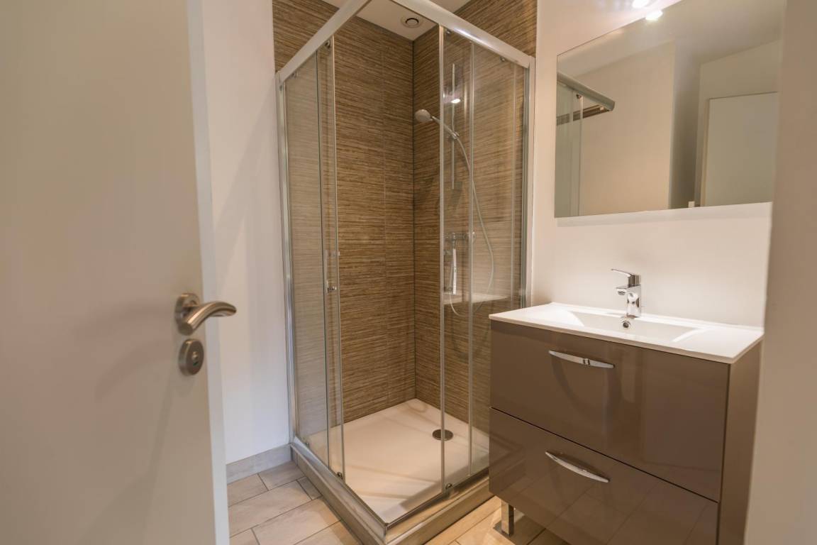 - ein Badezimmer (Dusche, Waschbecken, Heizkörper)