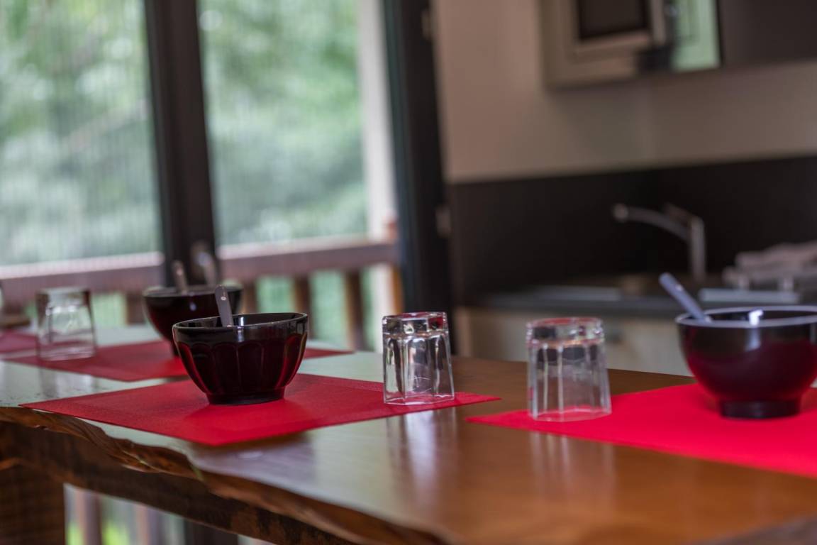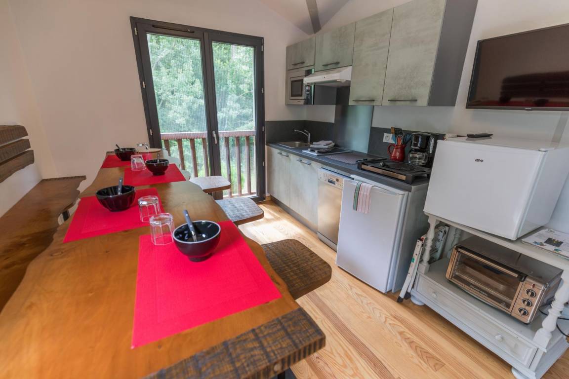 - eine ausgestattete Wohnküche (einen hochwertigen Kühlschrank, Backofen, 2 Induktionskochfelder, Geschirrspüler, Mikrowelle, Multifunktionsofen, Fernseher)