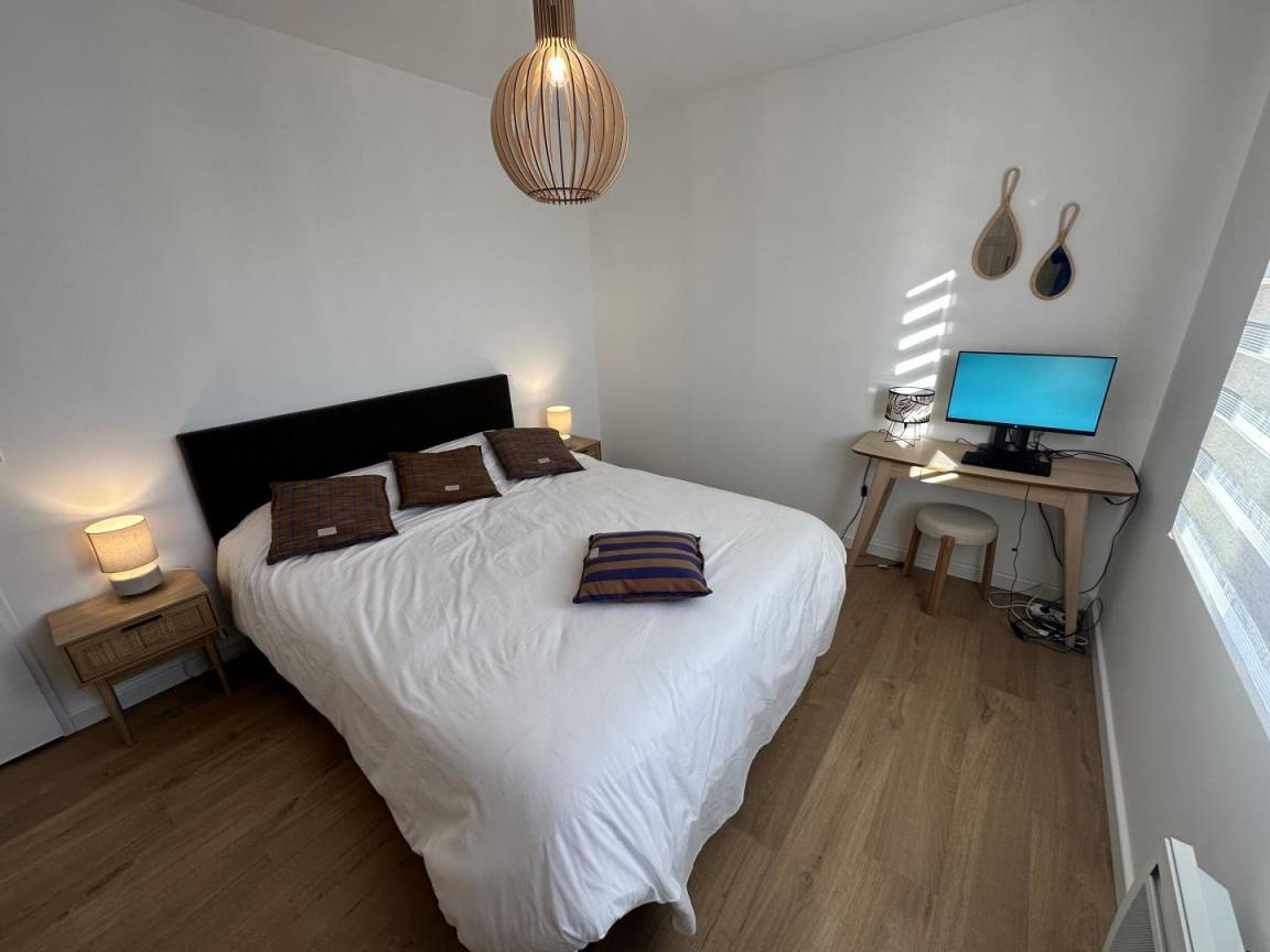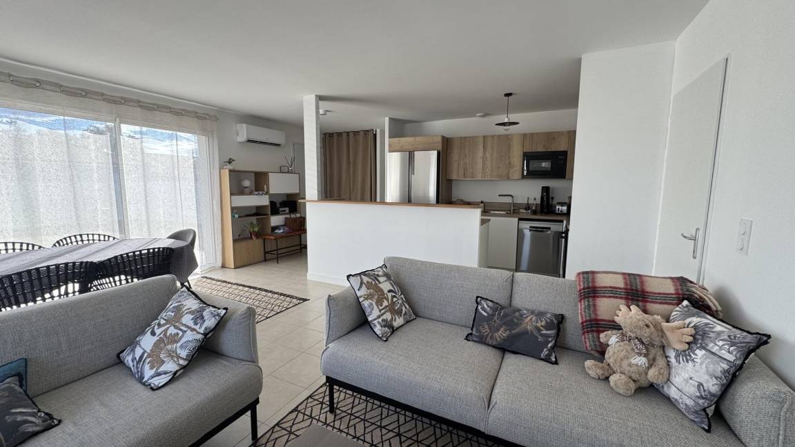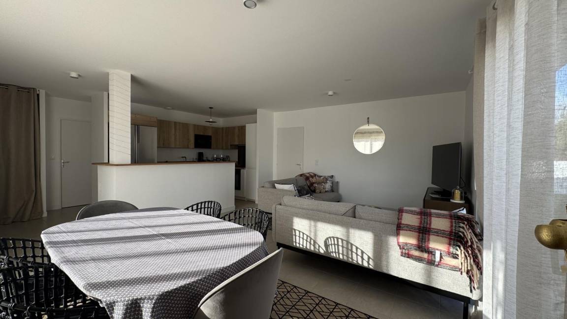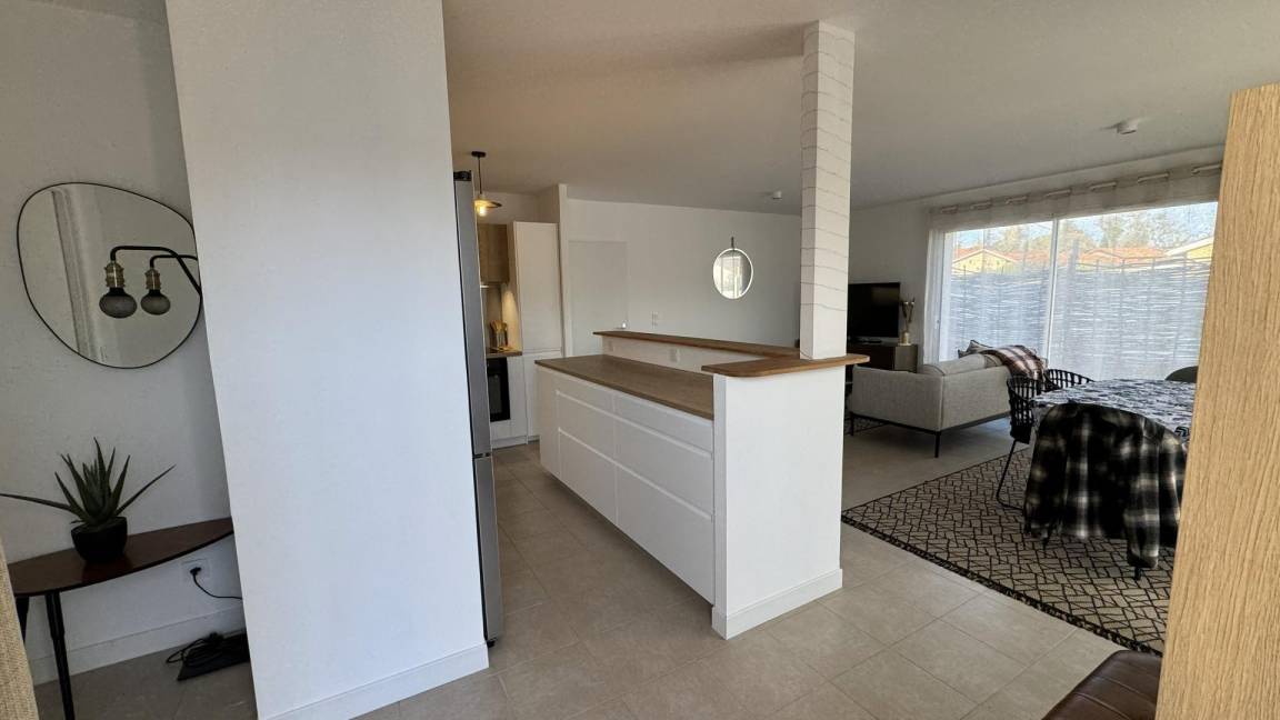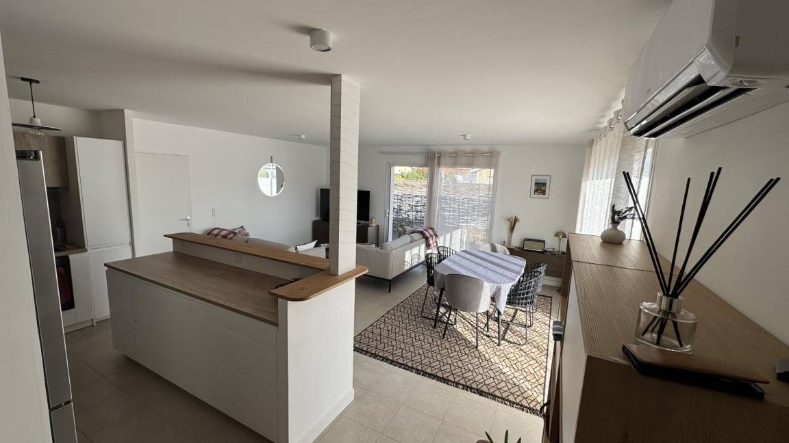 „Maison très bien équipée et fonctionnelle, de plain pied avec un extérieur joliment aménagé. cuisine aménagée très opérationnelle, guide d utilisation accessible et compréhensible rapidement. literie parfaite pour les trois chambres. salle de bain impeccable, deux toilettes, machine à laver, fil et etente à linge..Les deux terrasses, sont très agréables; celle protégée par un store-ban qui nous a permis de manger tous les jours dehors midi et soir (sauf le seul jour pluie pendant les deux semaines) sont l'énorme point positif. non utilisation de la clim par choix perso. localisation dans un quartier résidentiel très calme (quelques travaux durant le week-end mais rien de gravissime pendant notre séjour).Proximité du bourg (boulangerie, boucher, mini centre commercial, dépôt ordure à recycler etc à moins de 15 min à pied..le seul point négatif de ce séjour concerne la gestion de la literie: Si j'avais appris que les couettes n'avaient pas de housses de couettes fournies mais des draps plats pour les trois chambres... j'aurais emmené mon propre jeu... car pas facile maintenir une couette vu les températures.. et perso, pas à l'aise avec des couettes non protégées (le covid m'a laissé des traces).la remise des clefs; par un service de conciergerie, avec des envois de règlements intérieurs à lire et à signer quelques jours avant etc perd la notion du partage du principe du gite.. cette sous-traitance n'est pas gênante mais j'aurais aimé le savoir à la lecture du descriptif... d'où les 2 pour l'accueil.“