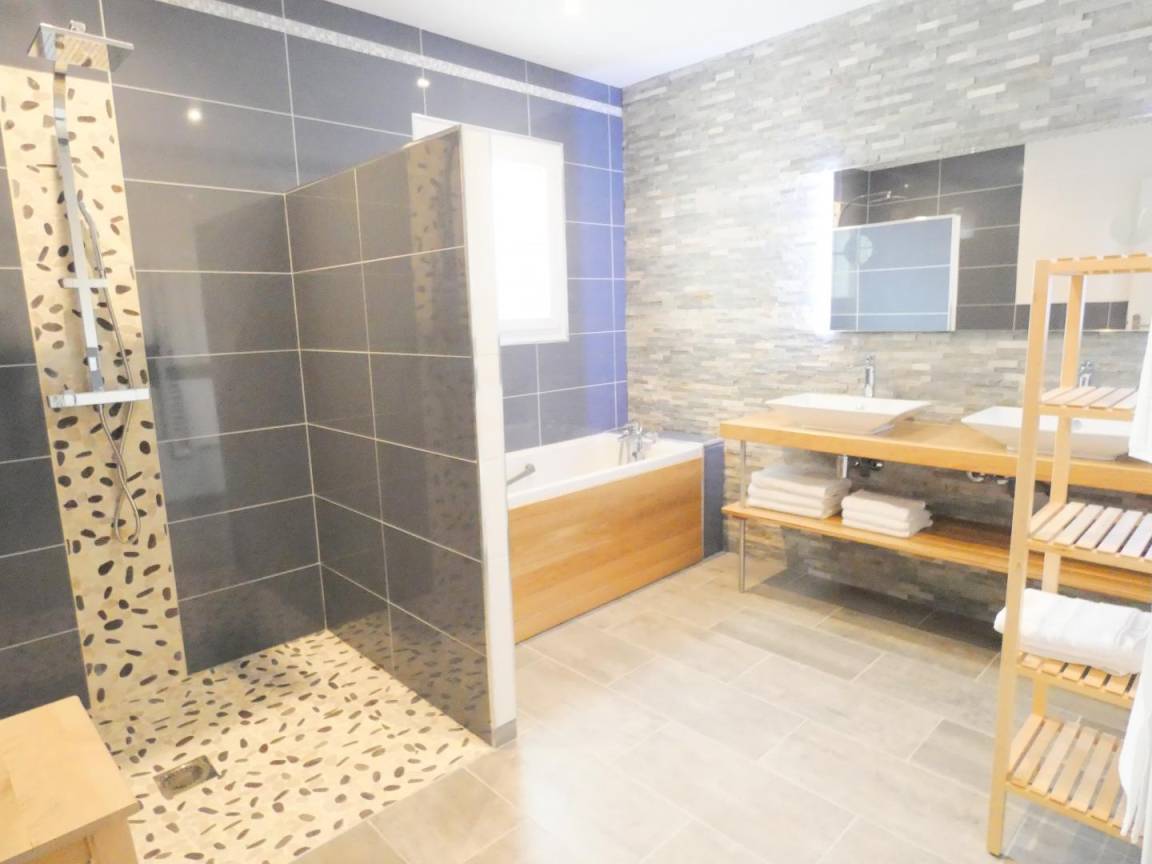 ein Badezimmer (mit Badewanne und großer italienischer Dusche),