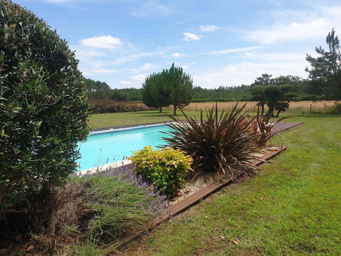 „Wir haben unseren Aufenthalt in Léon sehr genossen! Am Ankunftstag wurden wir überaus freundlich von den Besitzern empfangen, die uns das Haus zeigten und alles Notwendige erklärten. ‚Le Clos des Pins‘ ist in einwandfreiem Zustand, sauber und gepflegt, mit vielen Details liebevoll ausgestattet und funktionell sehr gut durchdacht (die BZ und SZ sind ein Traum). Es fehlte an nichts! Die Villa ist sehr ruhig gelegen und daher bestens für einen erholsamen Urlaub geeignet. Der sehr große Pool in dem schönen, weitläufigen Garten bot Erfrischung an warmen Tagen, von der großflächigen überdachten Terrasse hat man einen Blick auf das Anwesen und die Felder, wo sich auch Wildtiere beobachten lassen (Rehe, Fasane..).Der Ort Léon mit Supermarkt, zahlreichen Restaurants und Geschäften sowie die herrliche Umgebung mit Wäldern, ausgedehnten Stränden, Seen und Flüssen bieten zahlreiche Ausflugsmöglichkeiten, nach denen man sich dann bestens wieder auf der Terrasse der Villa entspannen kann. Nochmals herzlichen Dank an die Vermieter für die Aufmerksamkeiten und den tollen Service. Wir kommen gerne wieder und empfehlen ‚Le Clos des Pins‘ uneingeschränkt weiter! Merci beaucoup, Geneviève et Marc !“