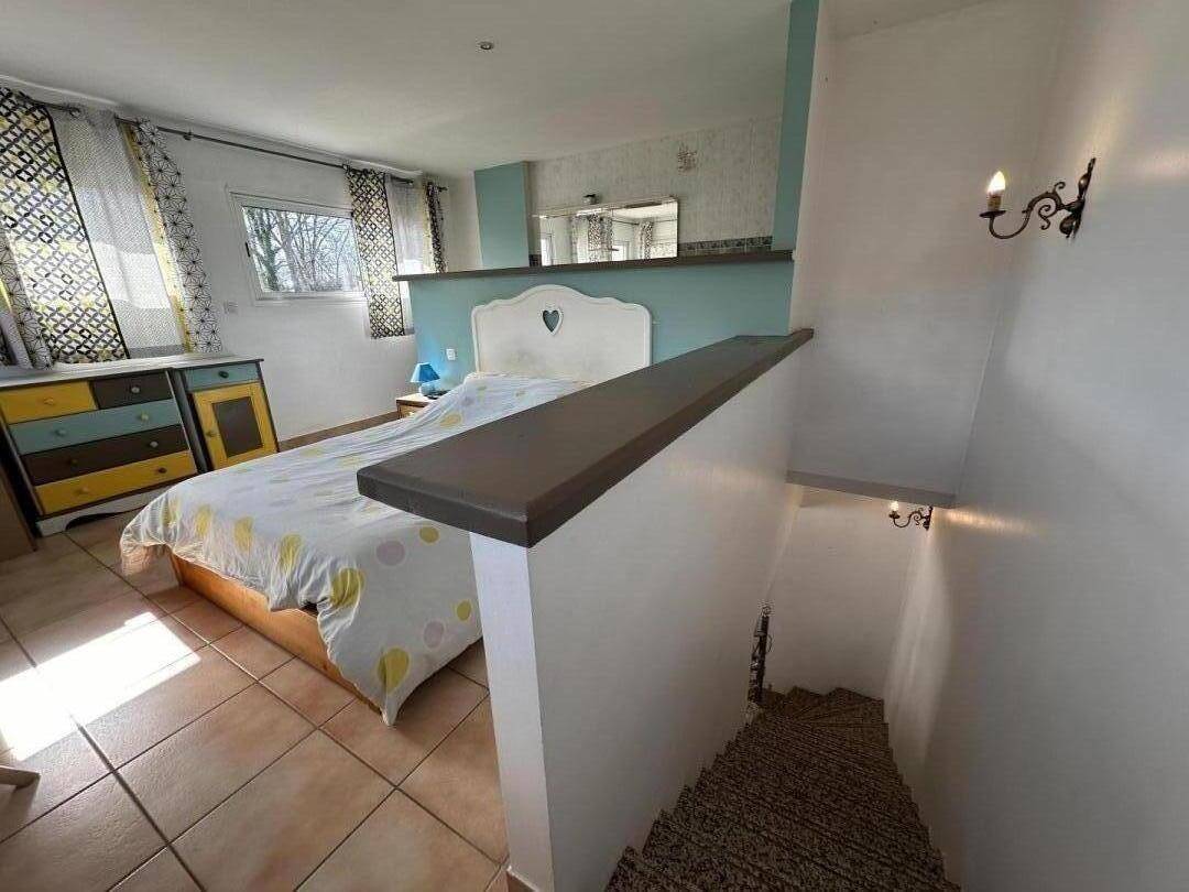 Wählen Sie die Villa Dunésia, ein Ferienhaus zur Selbstverpflegung in einer ruhigen Gegend. Es befindet sich im Erdgeschoss mit Zwischengeschoss und bietet: