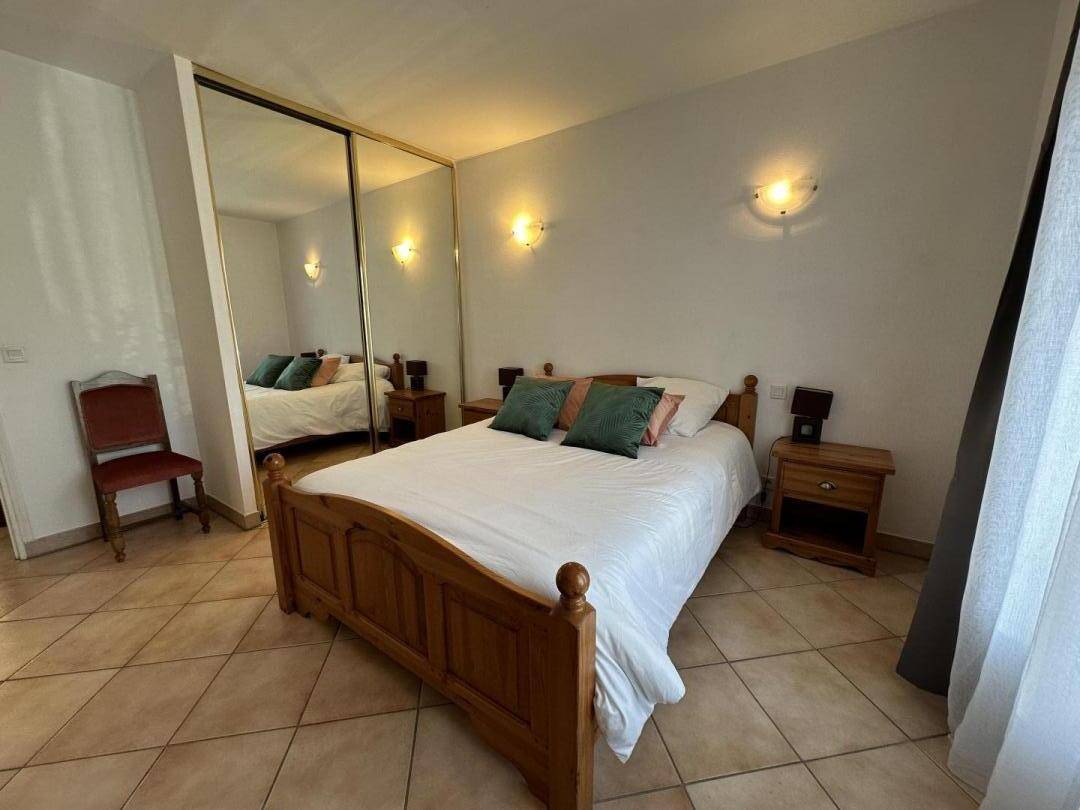 „Maison avec de grands volumes, équipements corrects, maison propre, accueil parfait. La route au bout du jardin apporte trop de bruit tout au long de la journée et une partie de la nuit. De ce fait prix trop élevé à cause de ce point noir. Il serait utile d'équiper cette maison avec une connexion Wi-Fi. Augmenter le nombre de chaises longues.“