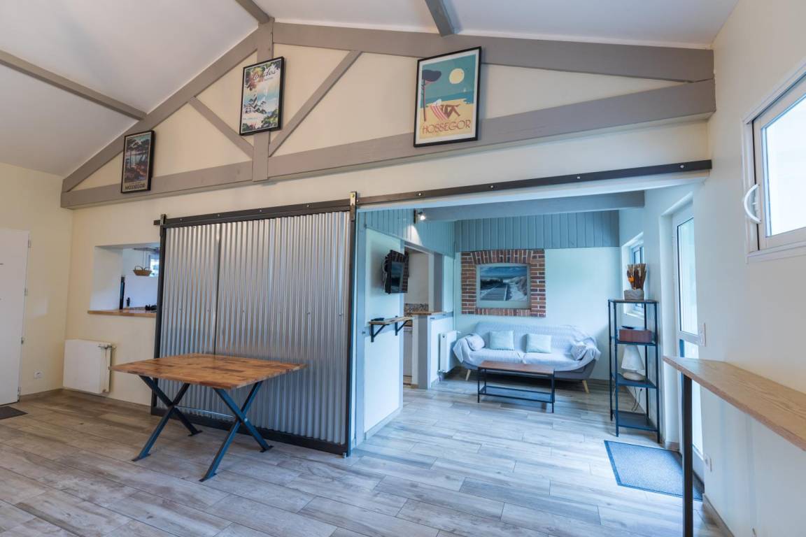 Nur wenige Schritte vom Lac de Léon entfernt, in einem herrlichen bewaldeten und blühenden Park, wird Sie diese ehemalige unabhängige Werkstatt, die zu einem Erdgeschoss umgebaut wurde, verzaubern.