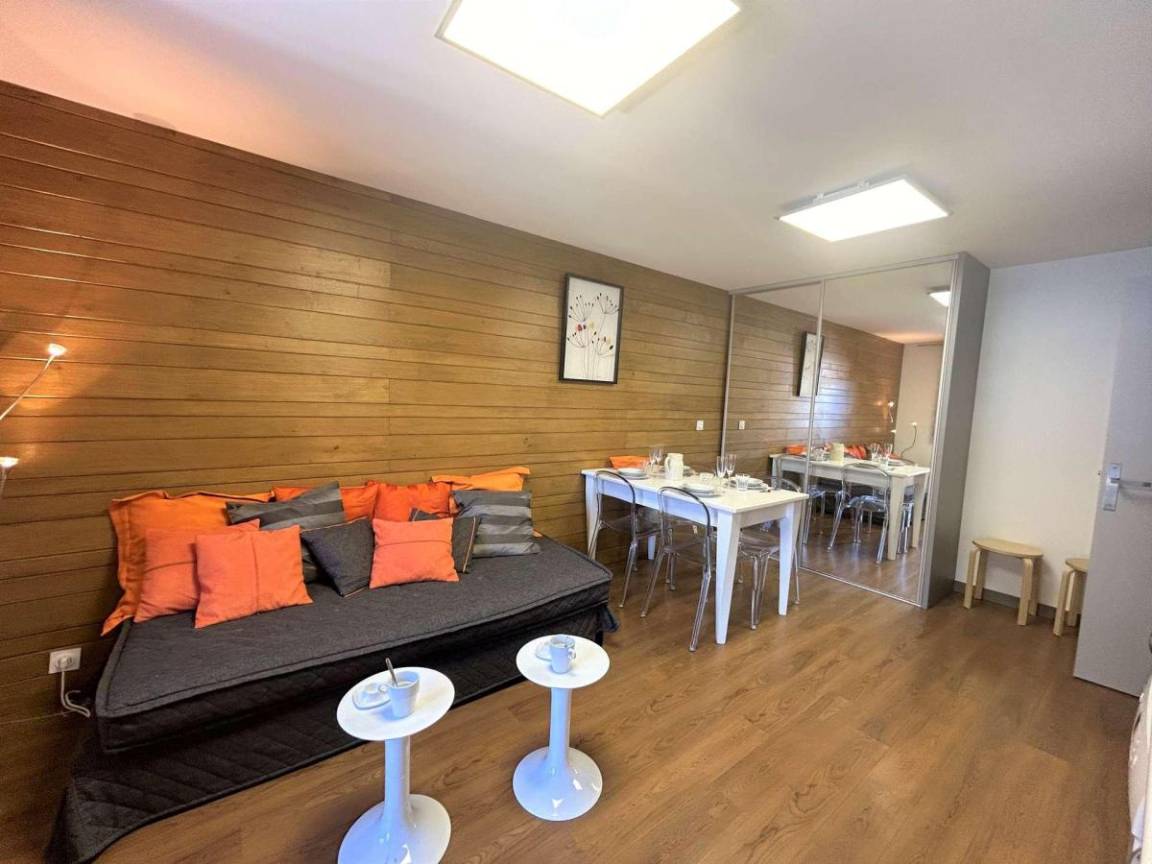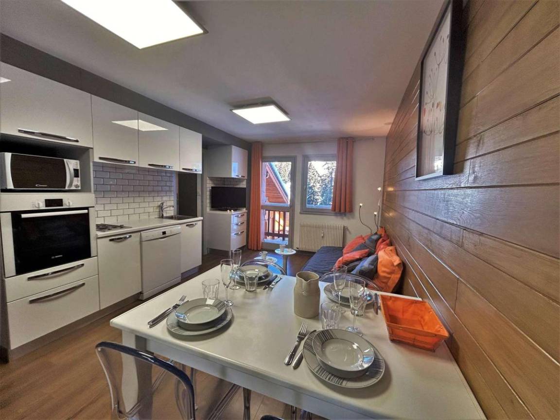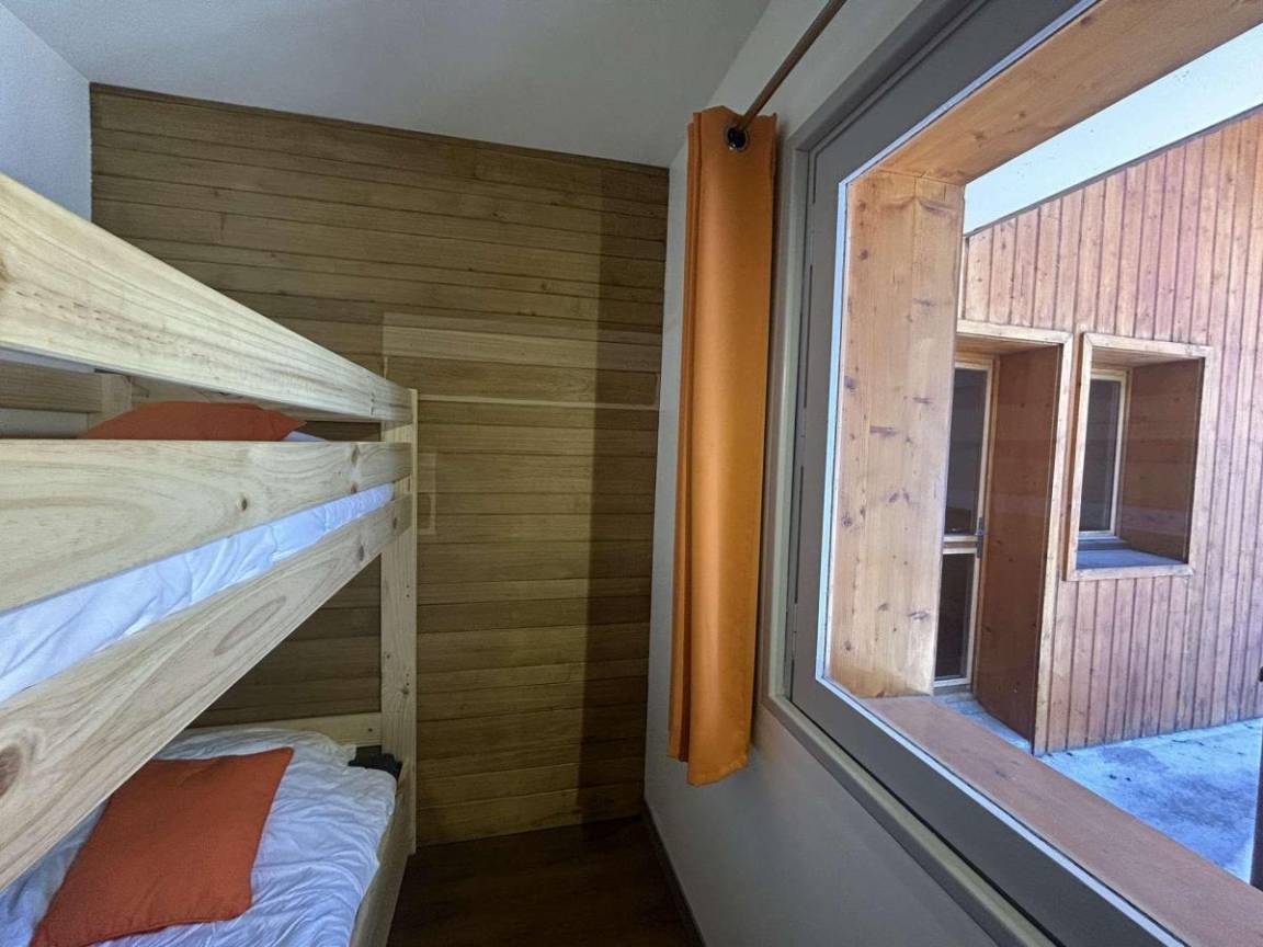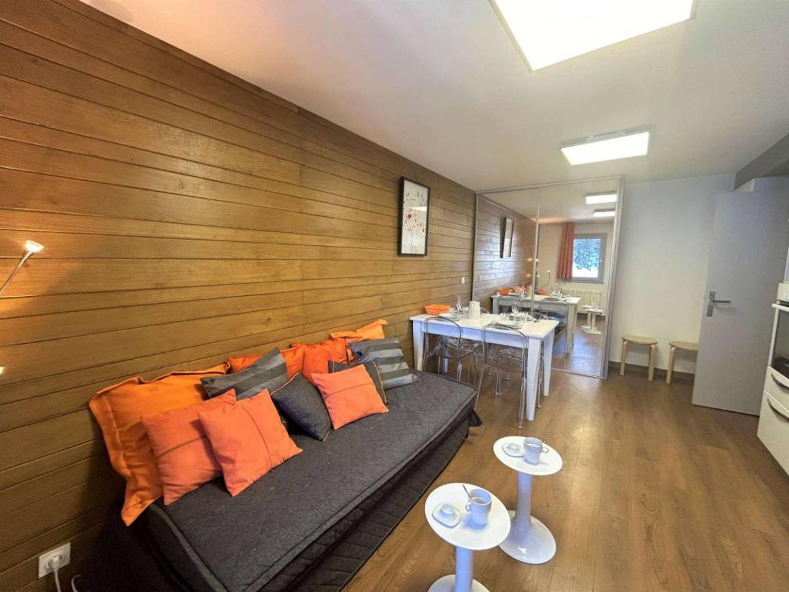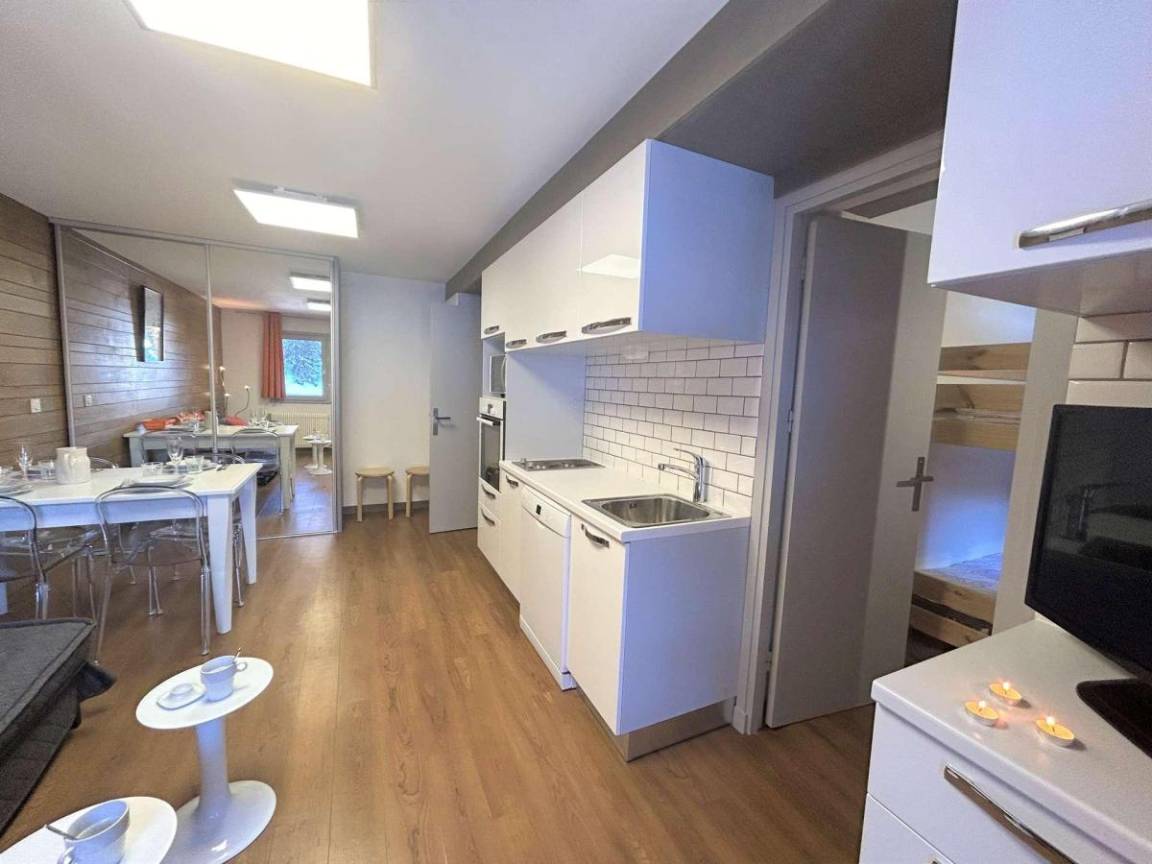 Die Residenz La Forêt (mit Aufzug) befindet sich ca. 80 Meter entfernt von den Skipisten im Viertel Plateau. Sie steht 150 Meter von der Haltestelle für das kostenlose Pendelbussensystem. Fläche von ungefähr 30 m². 3te Etage. Orientierung : Nord, West. Blick berg. Wohnzimmer mit Klappschlafcouch (2 pl). offener Schlafbereich mit 2 Stockbetten. Kochnische mit Wasserkocher, Kaffeemaschine, kleiner Backofen mit Mikrowellenfunktion, Toaster, Geschirrspülmaschine, 2 elektronische Herdplatten, Kühlschrank. Badezimmer mit WC. Balkon. Die oberen Betten sind nicht für Kinder unter 6 Jahren geeignet.